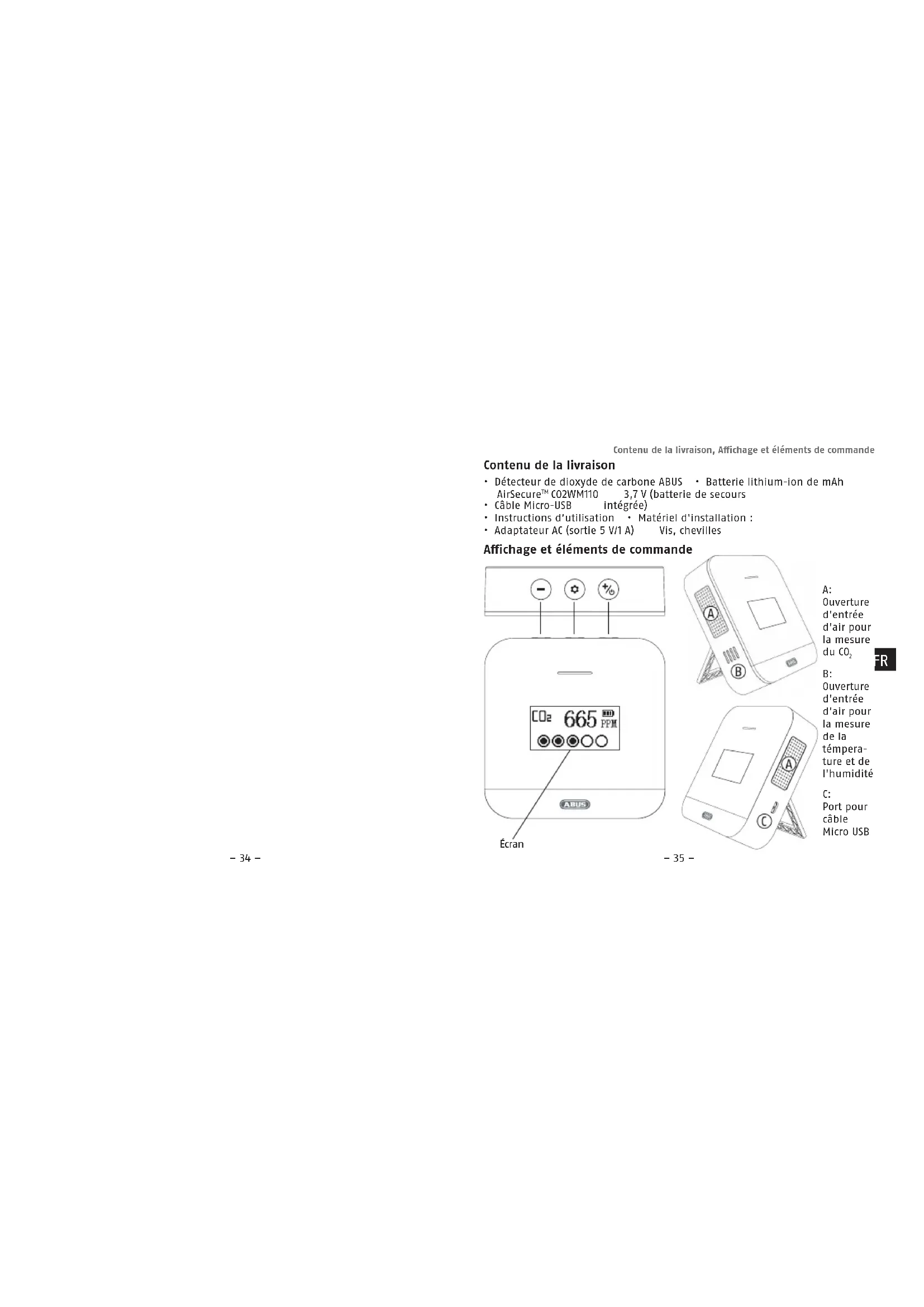 - Détecteur de dioxyde de carbone ABUS • Batterie lithium-ion de mAh AirSecure