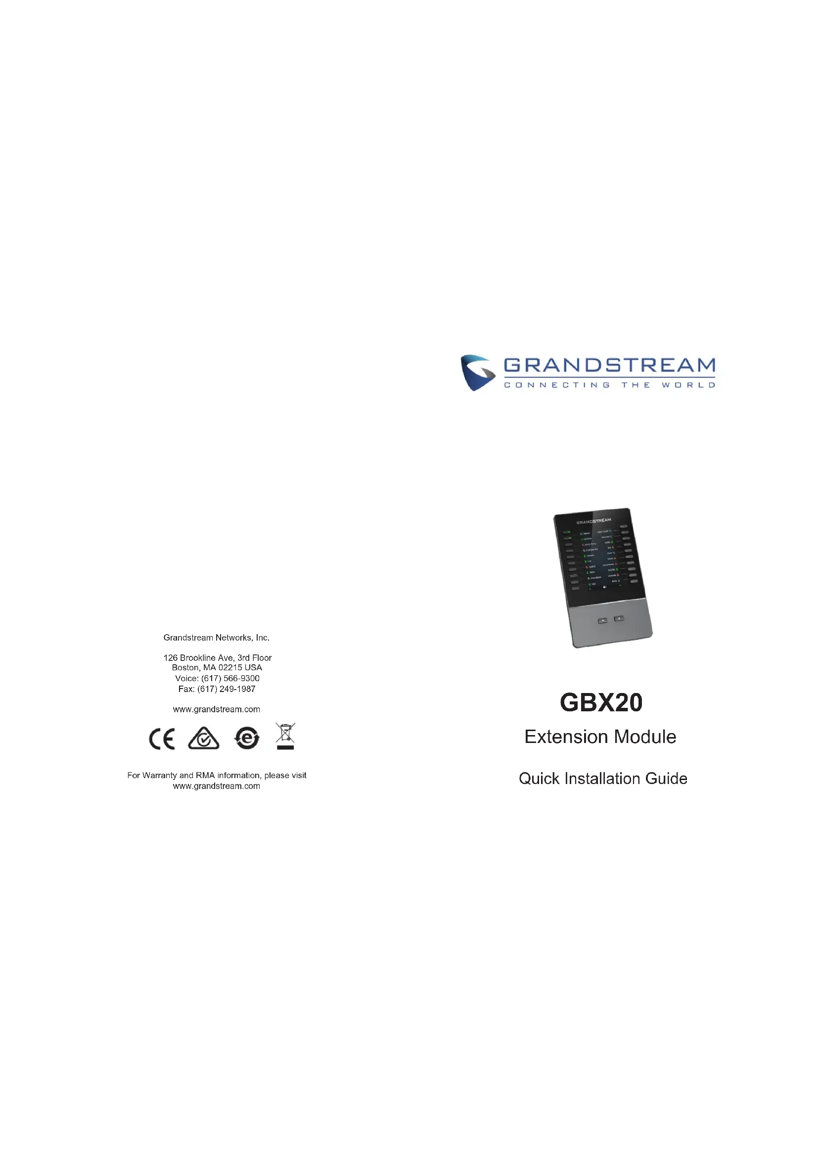 Retrouvez gratuitement la notice de l'appareil GBX20 GRANDSTREAM au format PDF.
