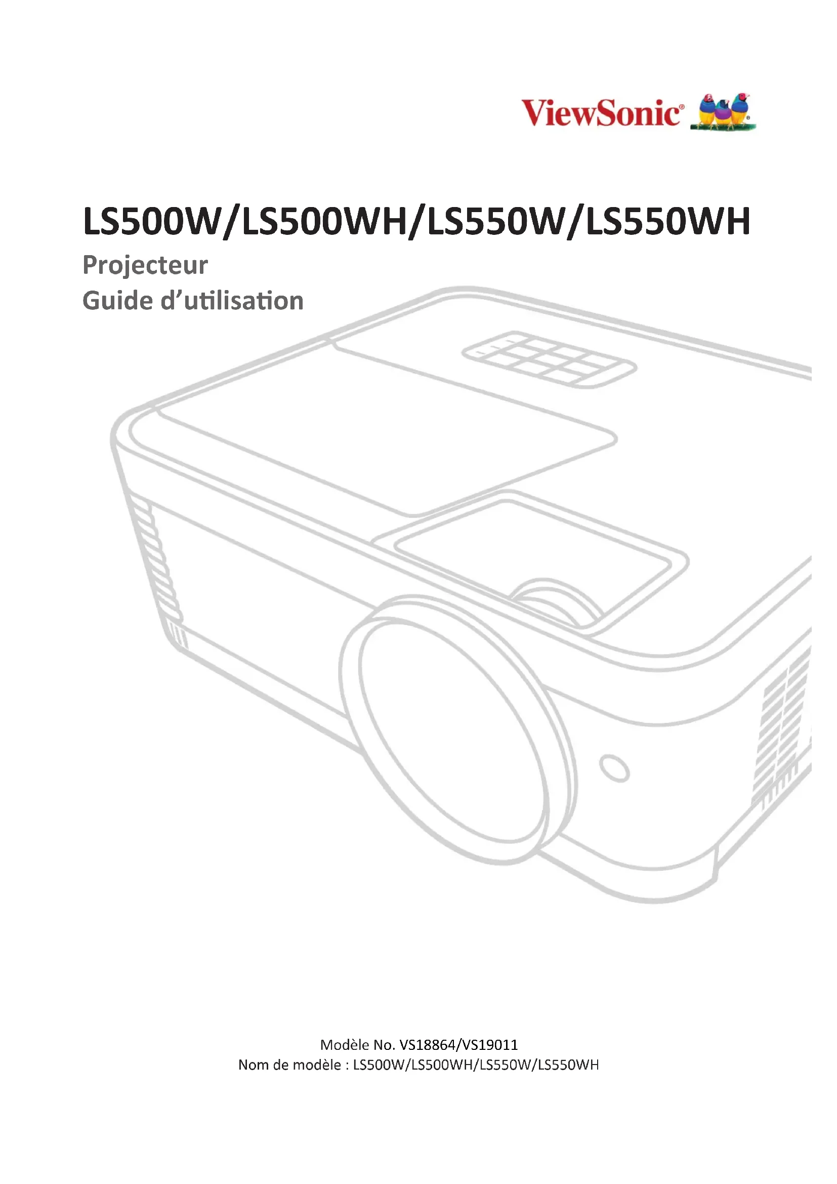 LS500W/LS500WH/LS550W/LS550WH Projecteur Guide d’ulisaon Modèle No. VS18864/VS19011 Nom de modèle : LS500W/LS500WH/LS550W/LS550WH2 Merci d’avoir choisi ViewSonic® ViewSonic®, un des principaux fournisseurs mondiaux de soluons visuelles, s’engage à dépasser les aentes du monde en maère d’évoluon technologique, d’innovaon et de simplicité. Chez ViewSonic®, nous pensons que nos produits peuvent avoir un impact posif dans le monde et nous sommes convaincus que le produit ViewSonic® que vous avez choisi vous sera ule. Encore une fois, merci d’avoir choisi ViewSonic® !3 Précautions de sécurité - Général Veuillez lire les Précautions de sécurité suivantes avant de commencer à utiliser le projecteur.