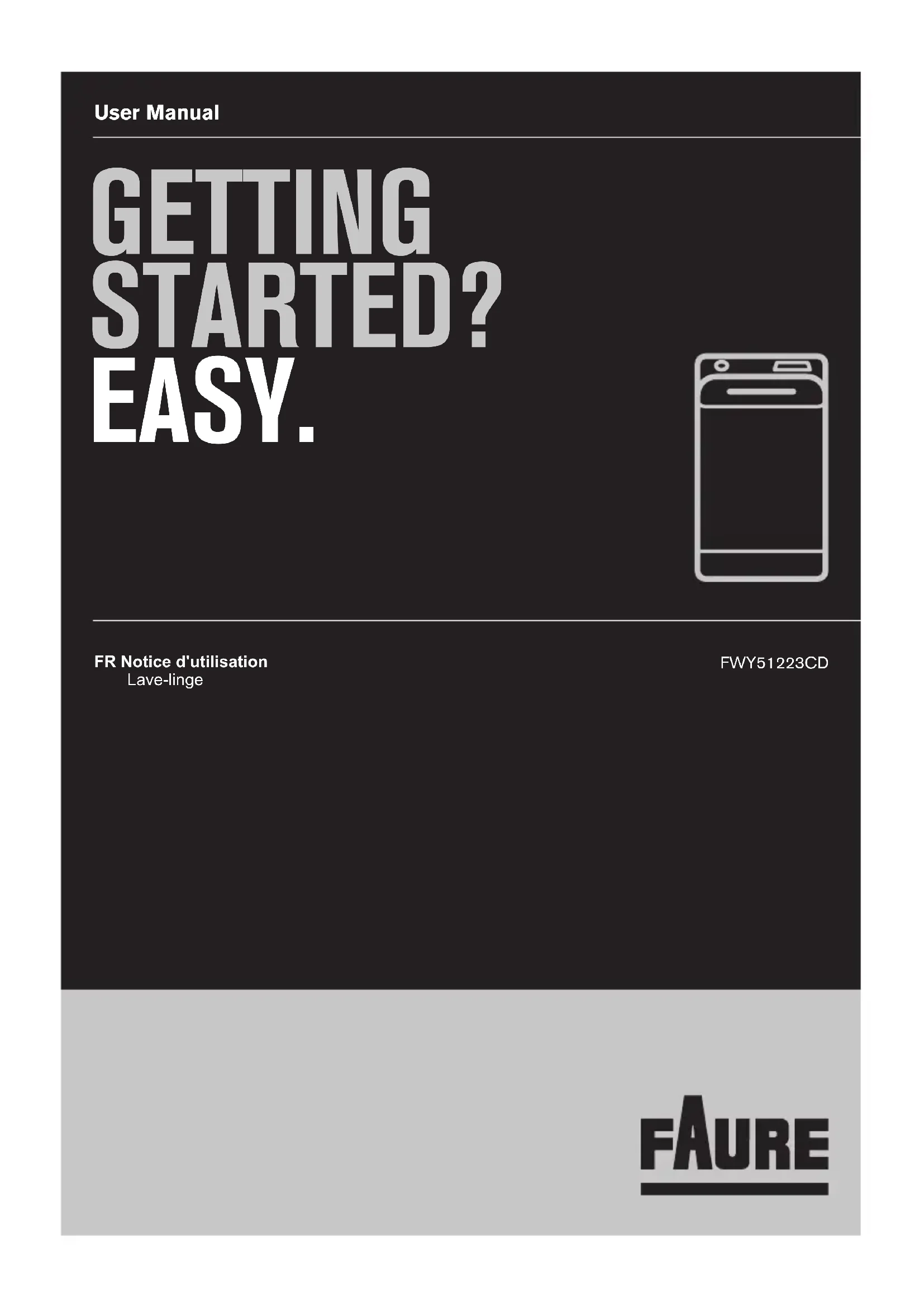 GETTING STARTED? EASY. User Manual FWY51223CD FR Notice d'utilisation Lave-lingeVISITEZ NOTRE SITE WEB POUR : Obtenir des conseils d’utilisation, des brochures, un dépanneur, des informations sur le service et les réparations : www.faure.com/support
