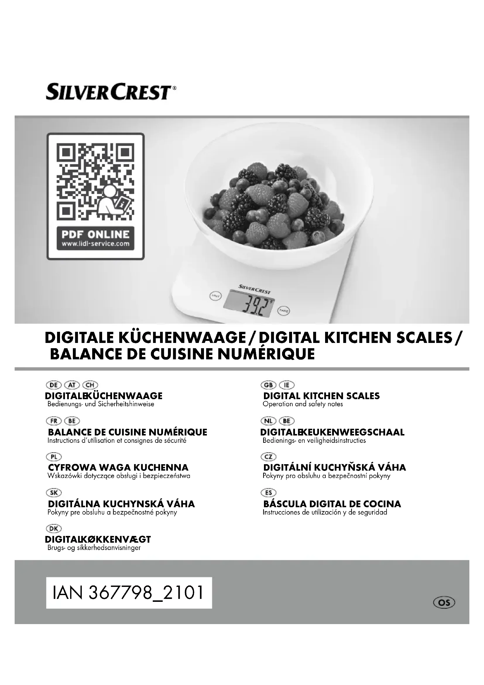 Symbole « Tare » T Caractéristiques techniques Plage de pesage: 5000 g / 176 oz / 11 lb / 5000 ml / 175 fl’oz Graduation : 1g / 0,05 oz / 0 lb:0,1 oz / 1ml / 0,05 fl’oz Pile : modèle bouton, Type CR2032, 1 x 3 V Courant nominal : 10 mA Contenu de la livraison Immédiatement après le déballage, veuillez contrôler que la fourniture est au complet et que le produit et toutes les pièces se trouvent en parfait état. N‘assemblez en aucun cas le produit, si le contenu de livraison ne devait pas être complet. 1 Balance de cuisine 1 Récipient de pesée 1 Batterie 1 Mode d‘emploi25 FR/BE Consignes de sécurité