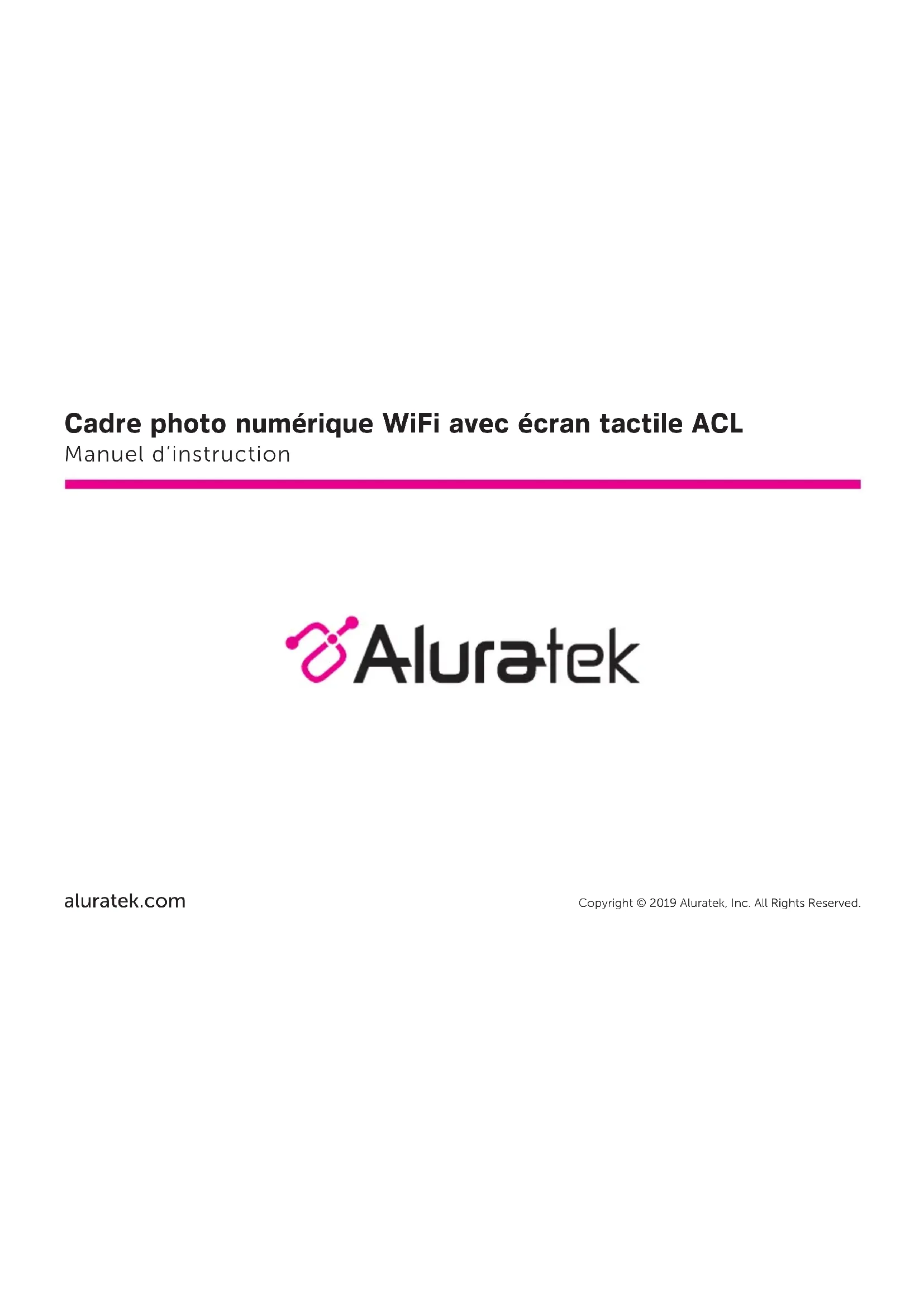 Copyright © 2019 Aluratek, Inc. All Rights Reserved. aluratek.com Manuel d’instruction Cadre photo numérique WiFi avec écran tactile ACL04