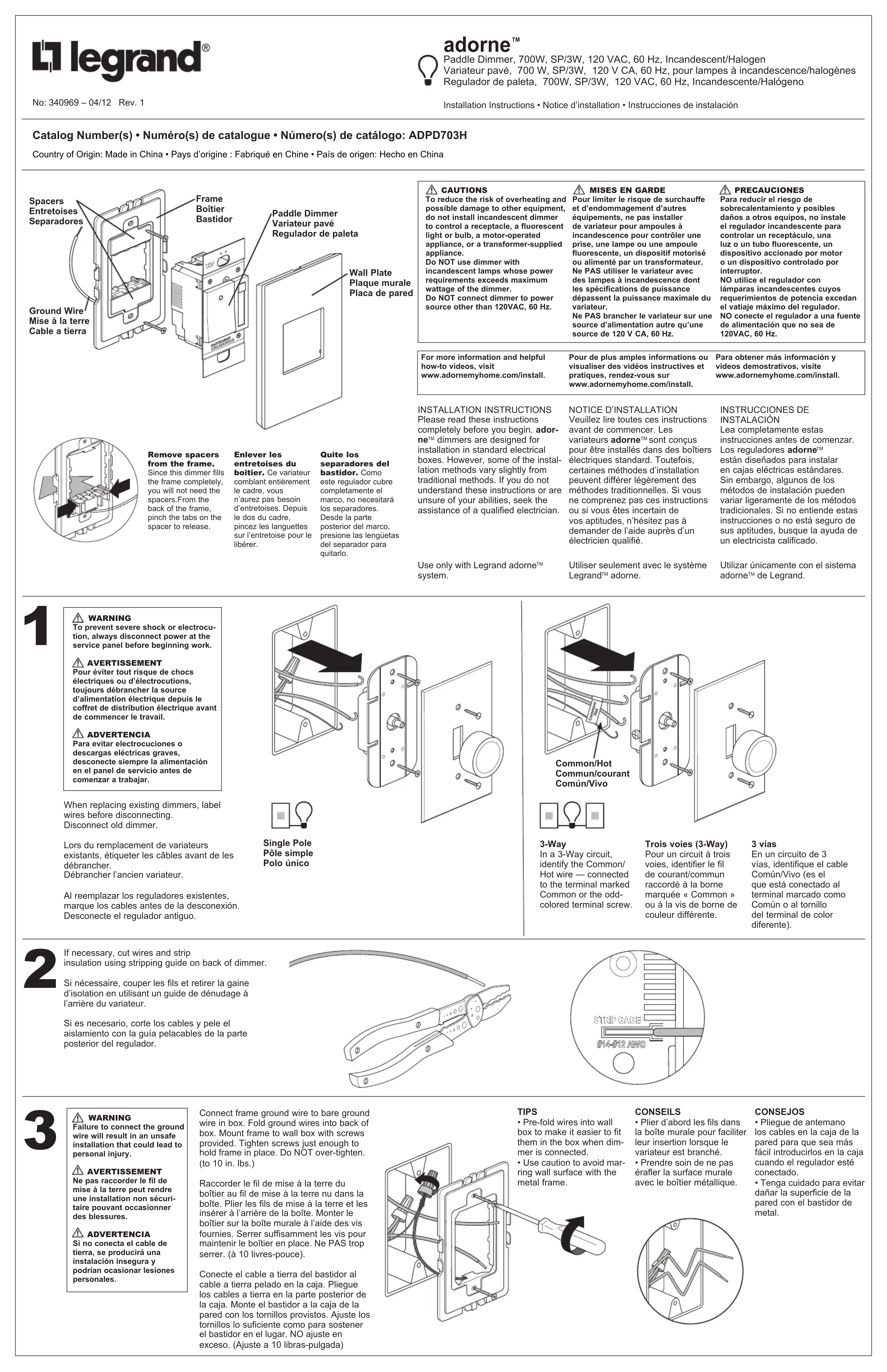 ADPD703H - Commutateur LEGRAND - Notice d'utilisation et mode d'emploi gratuit
