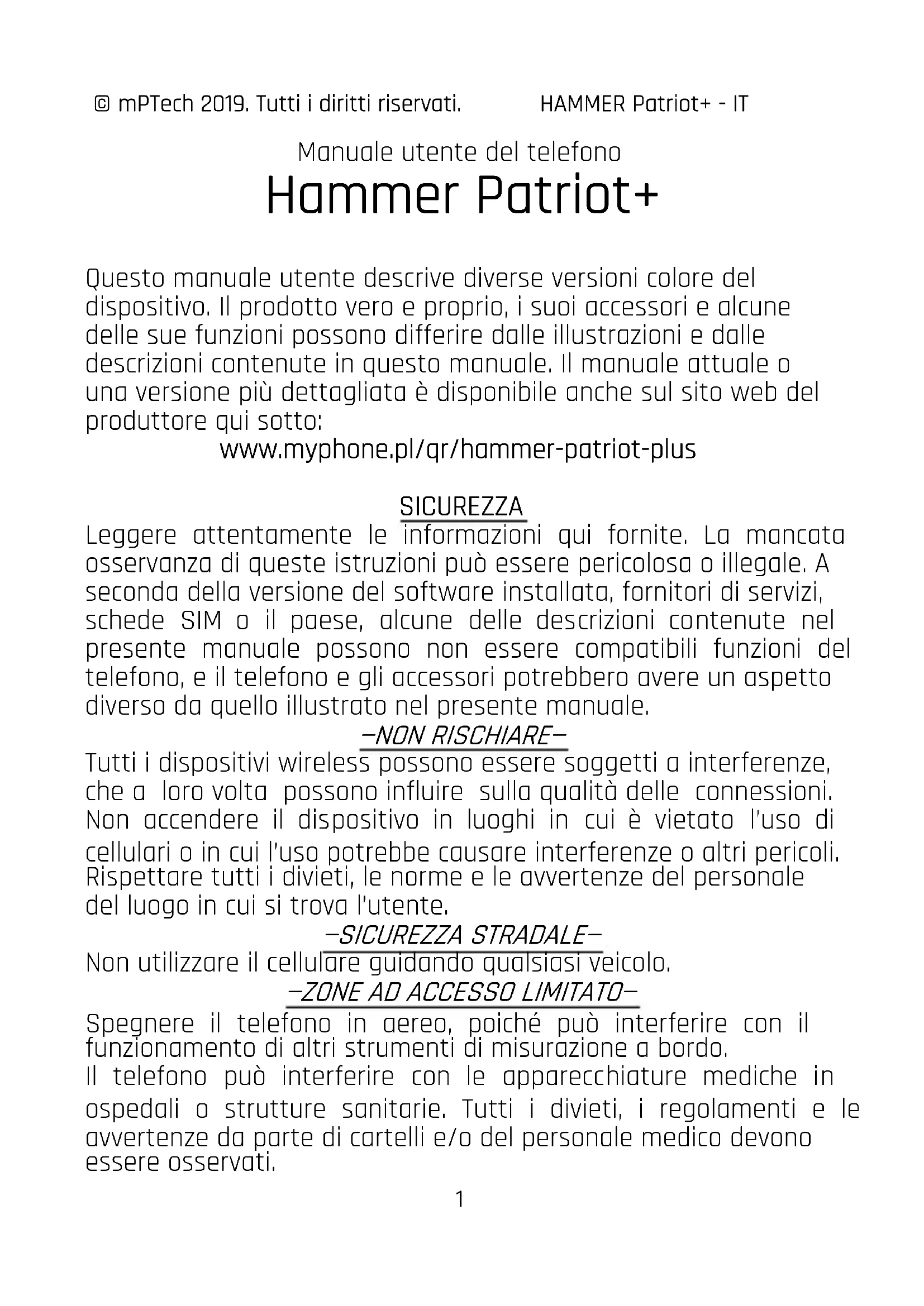 Il se peut que vous ne soyez pas en mesure de faire des appels d'urgence à partir de votre téléphone dans toutes les régions ou dans toutes les circonstances. Il est recommandé de trouver un© mPTech 2019. Tous droits réservés. HAMMER Patriot+ - FR