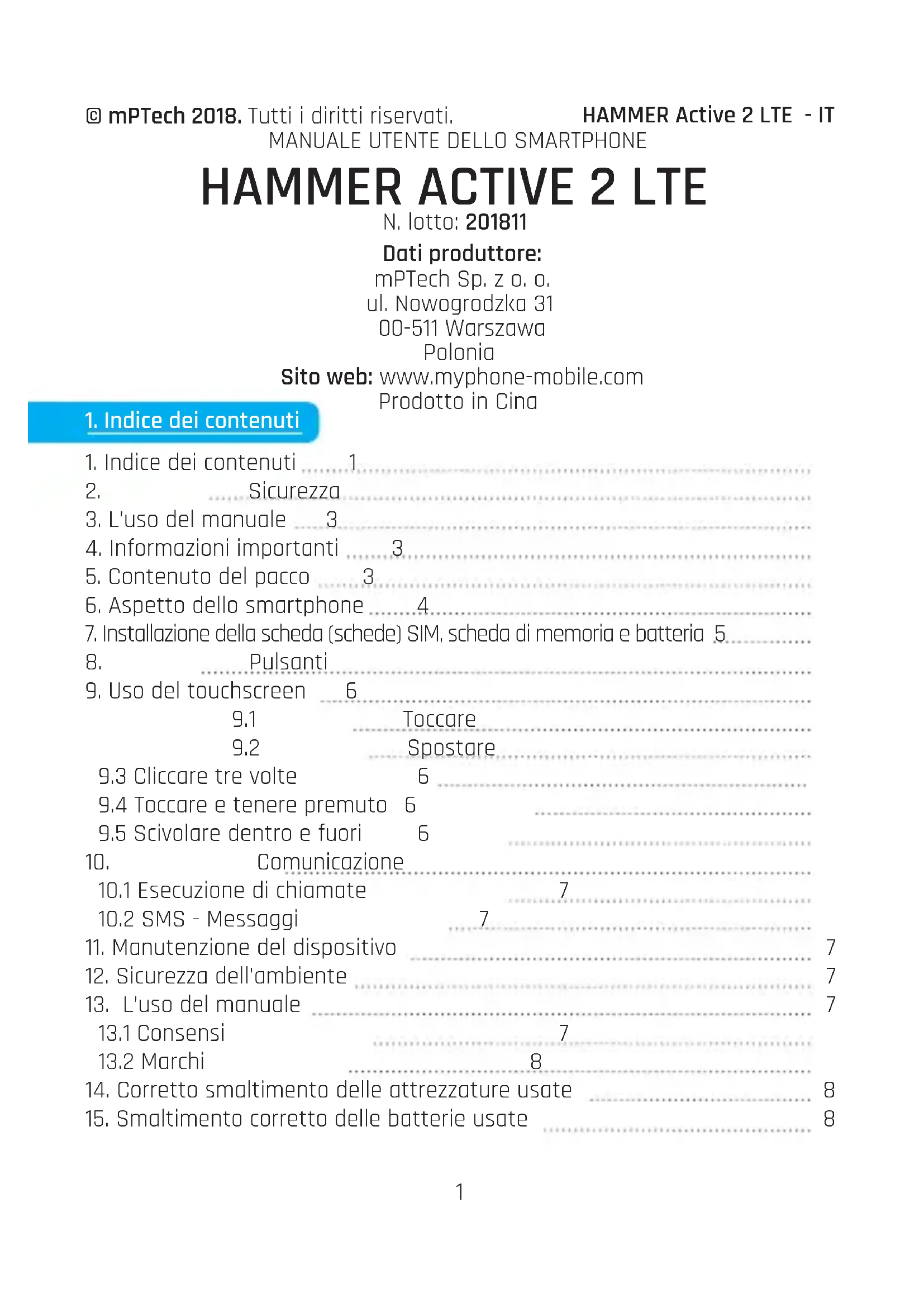 HAMMER Active 2 LTE - FR Fabricant mPTech Sp.z.o.o. 31, rue Nowogrodzka 00-511 Varsovie Pologne Site d’internet: www.myphone-mobile.com Fabriqué en Chine