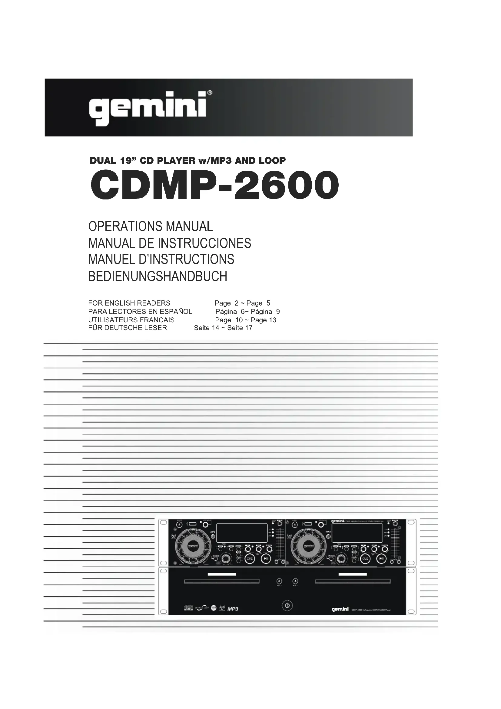 Retrouvez gratuitement la notice de l'appareil CDMP2600 GEMINI au format PDF.