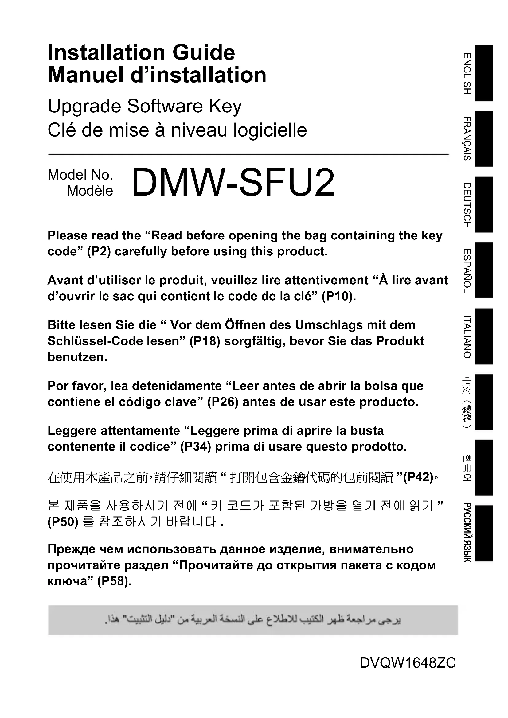 Obtention du code d’activation Site de génération des codes d’activation : https://eww.pavc.panasonic.co.jp/enhance/ActivationTop/en (Ce site est en anglais uniquement.) DMC-SFU2-DVQW1648.book 15 ページ 2022年3月8日 火曜日 午後6時8分DVQW1648 (FRE)