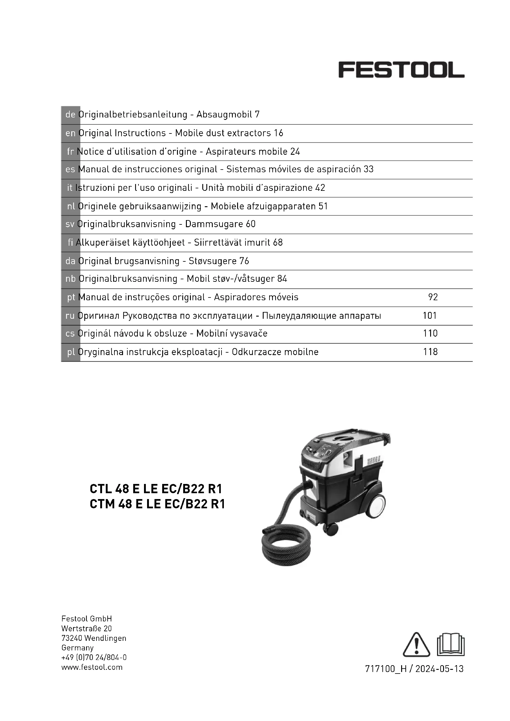 Retrouvez gratuitement la notice de l'appareil Cleantec CT 48 EC B22 FESTOOL au format PDF.