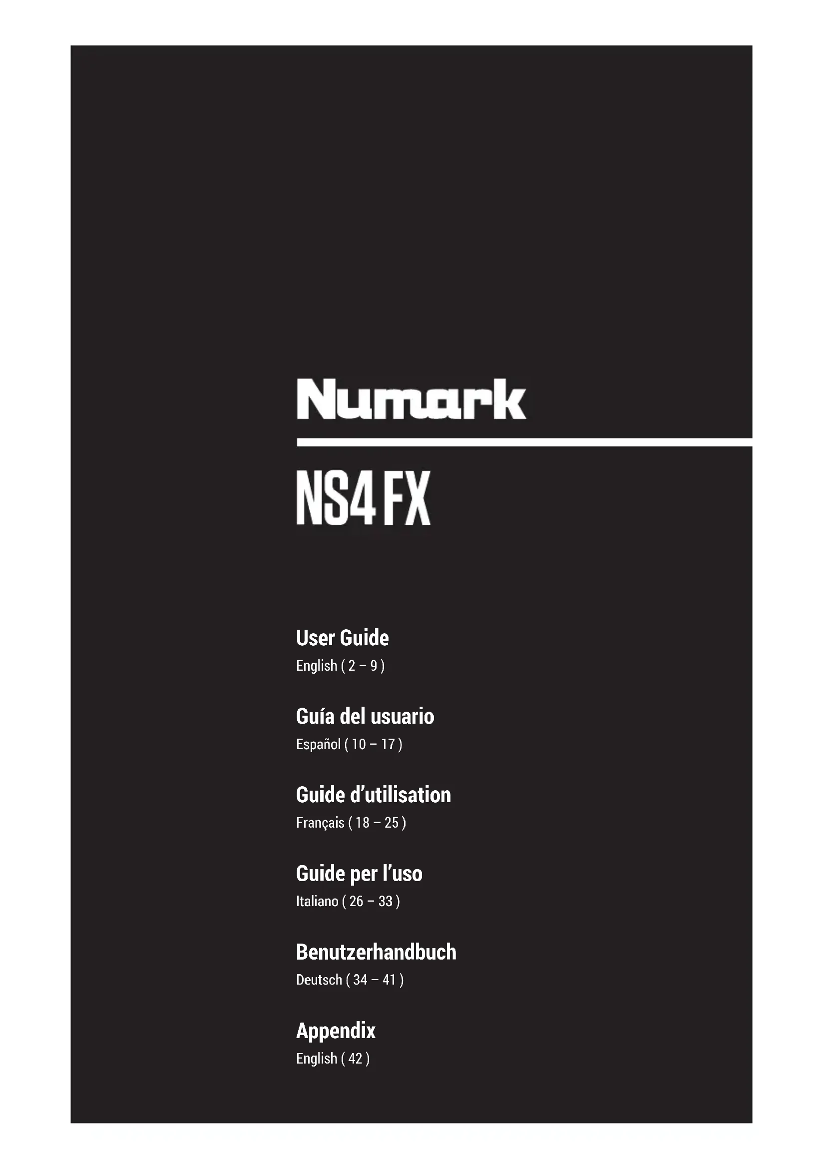 Guide d’utilisation (Français) Présentation Merci d’avoir fait l’acquisition du NS4 FX. Chez Numark, nous savons à quel point la musique est importante pour vous. C’est pourquoi nous concevons nos produits avec une seule chose en tête — faire de votre performance la meilleure qui soit. Nous sommes honorés et enthousiastes de pouvoir jouer un rôle dans votre parcours de création musicale dans l’univers du DJing.