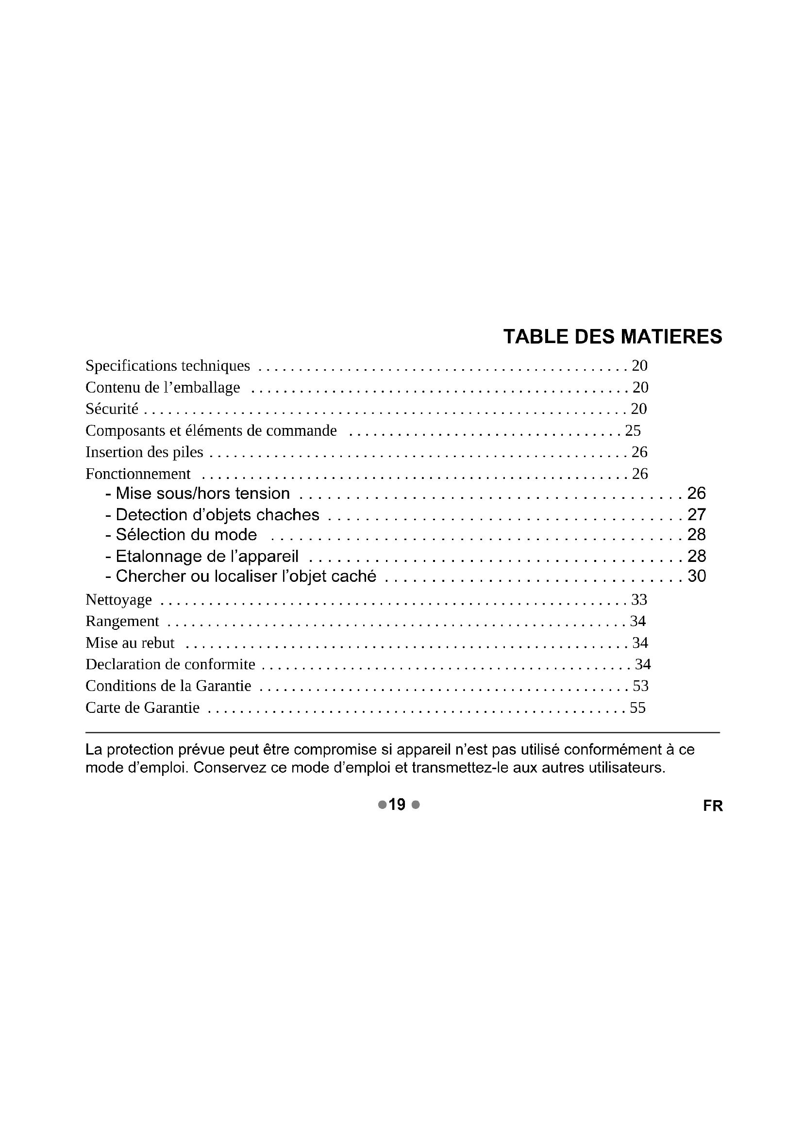 - Insertion des piles p. 26