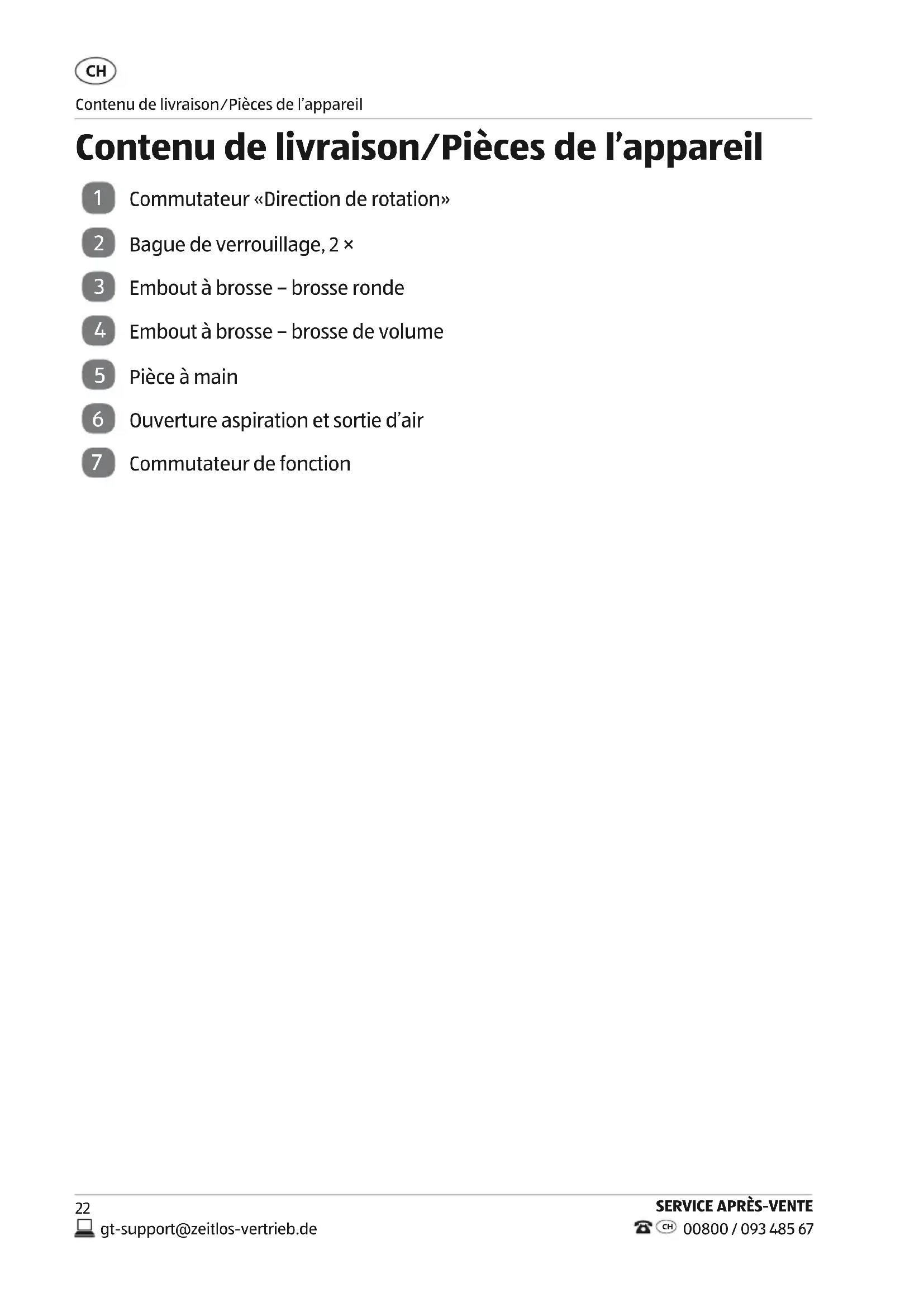 Contenu de livraison⁄Pièces de l’appareil