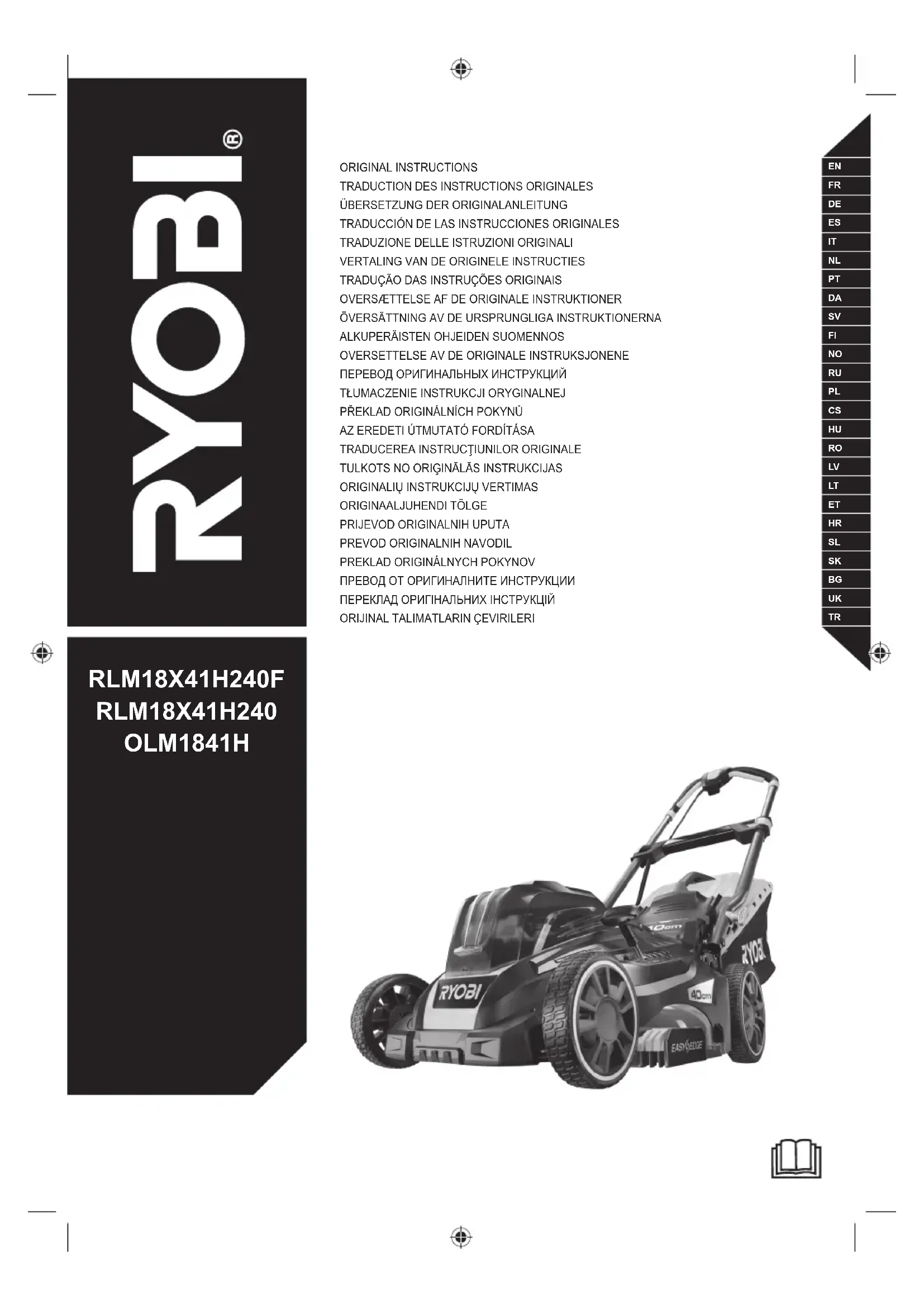 One+ OLM1841H - Tondeuse à gazon RYOBI - Notice d'utilisation et mode d'emploi gratuit