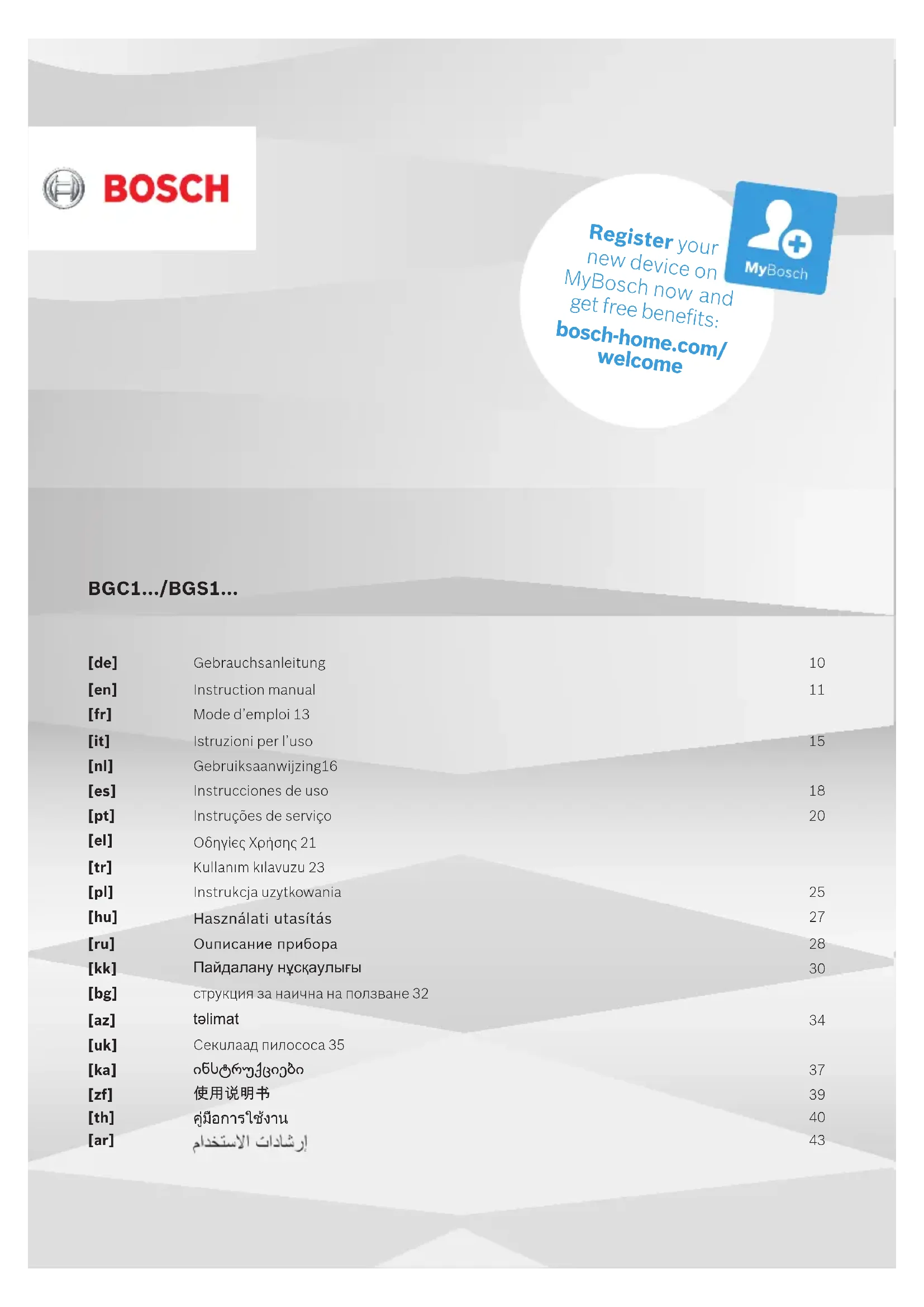 Retrouvez gratuitement la notice de l'appareil BGC1U1700 BOSCH au format PDF.