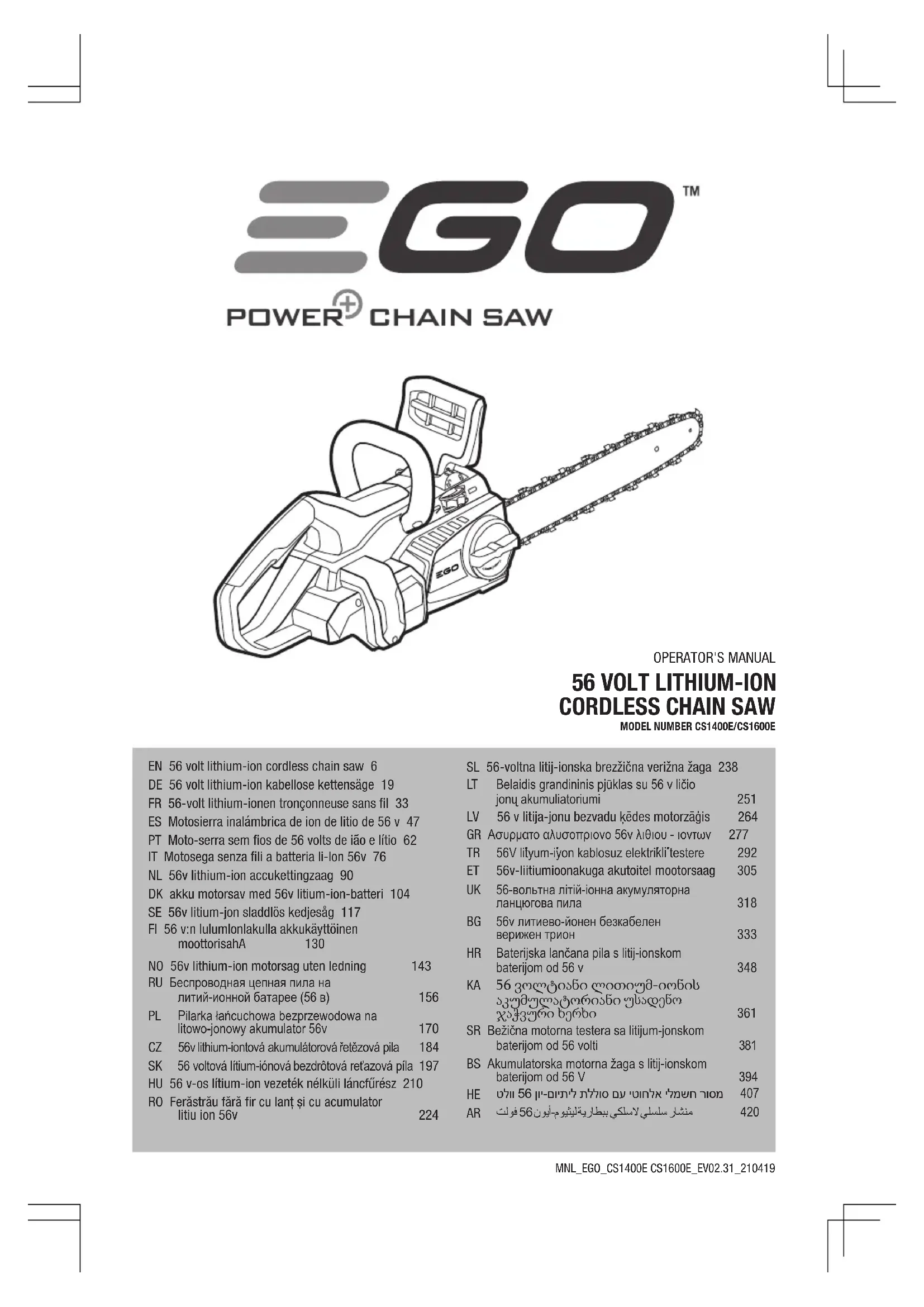 CS1401E - Scie EGO - Notice d'utilisation et mode d'emploi gratuit