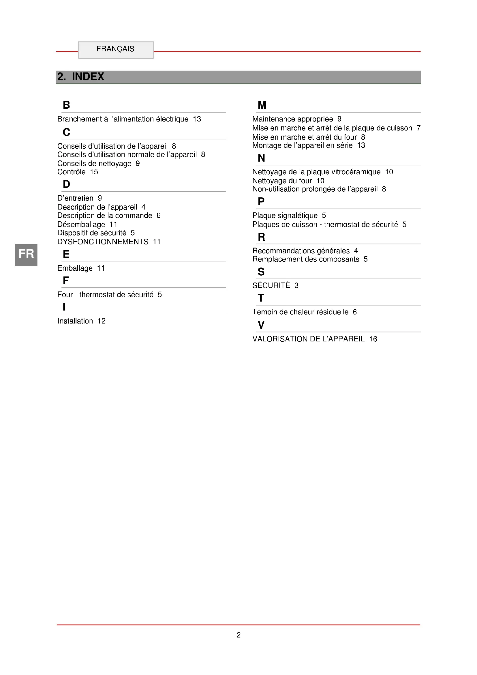 Nettoyage de la plaque vitrocéramique 10 Nettoyage du four 10 Non-utilisation prolongée de l’appareil 8