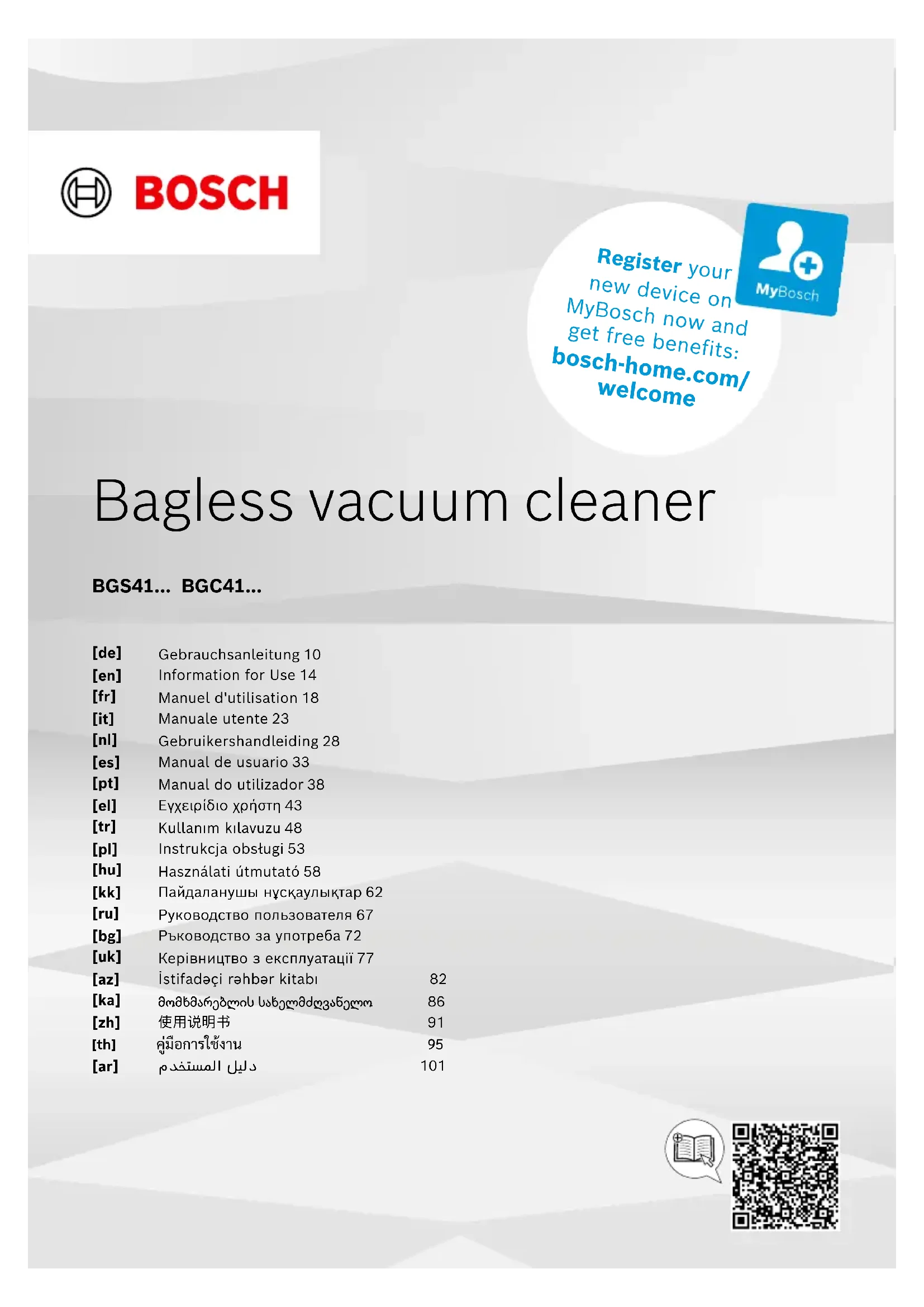 BGC41XALL - Aspirateur BOSCH - Notice d'utilisation et mode d'emploi gratuit