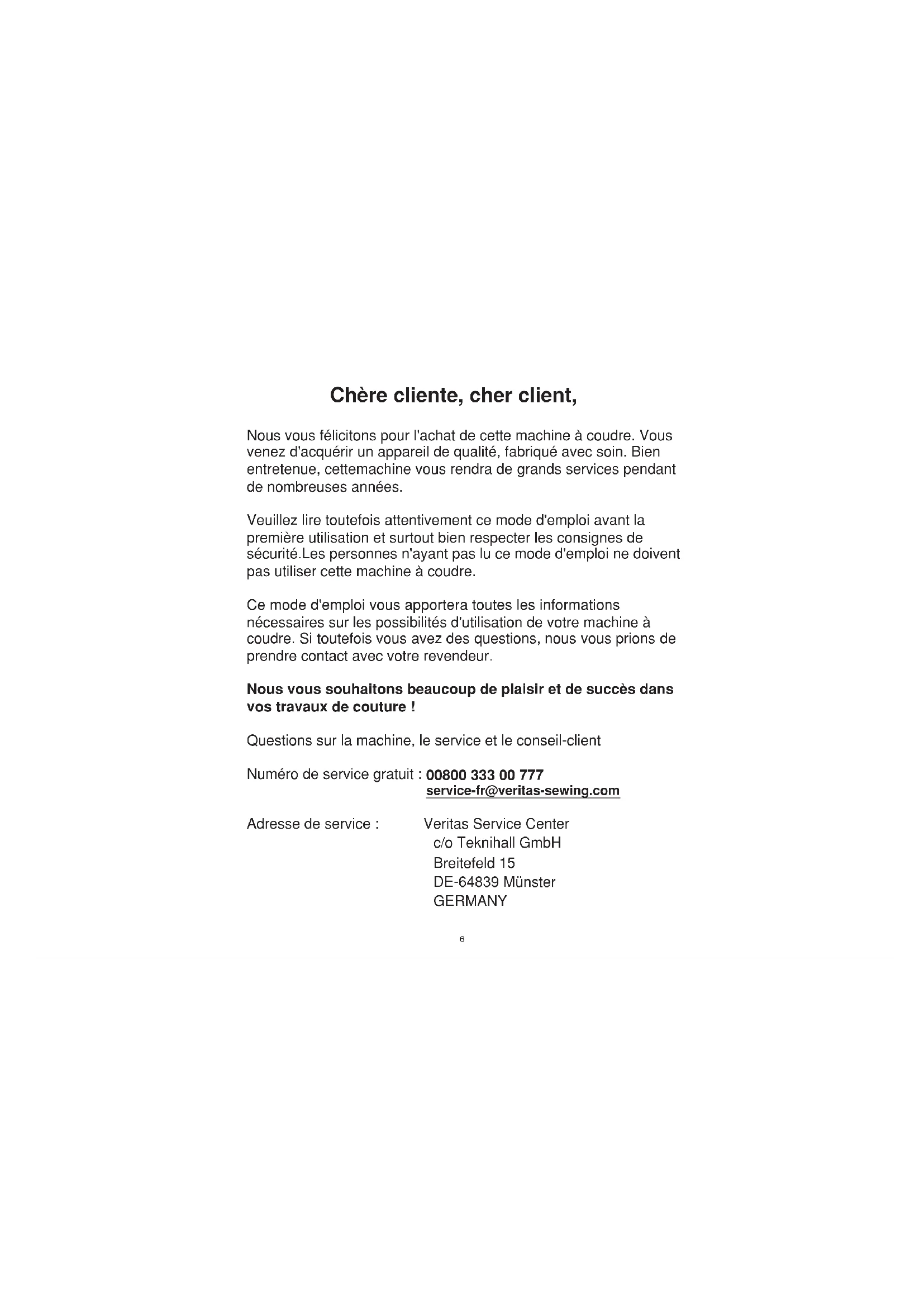 Numéro de service Gratuit : 00800 333 00 777 service-fr@veritas-sewing.com