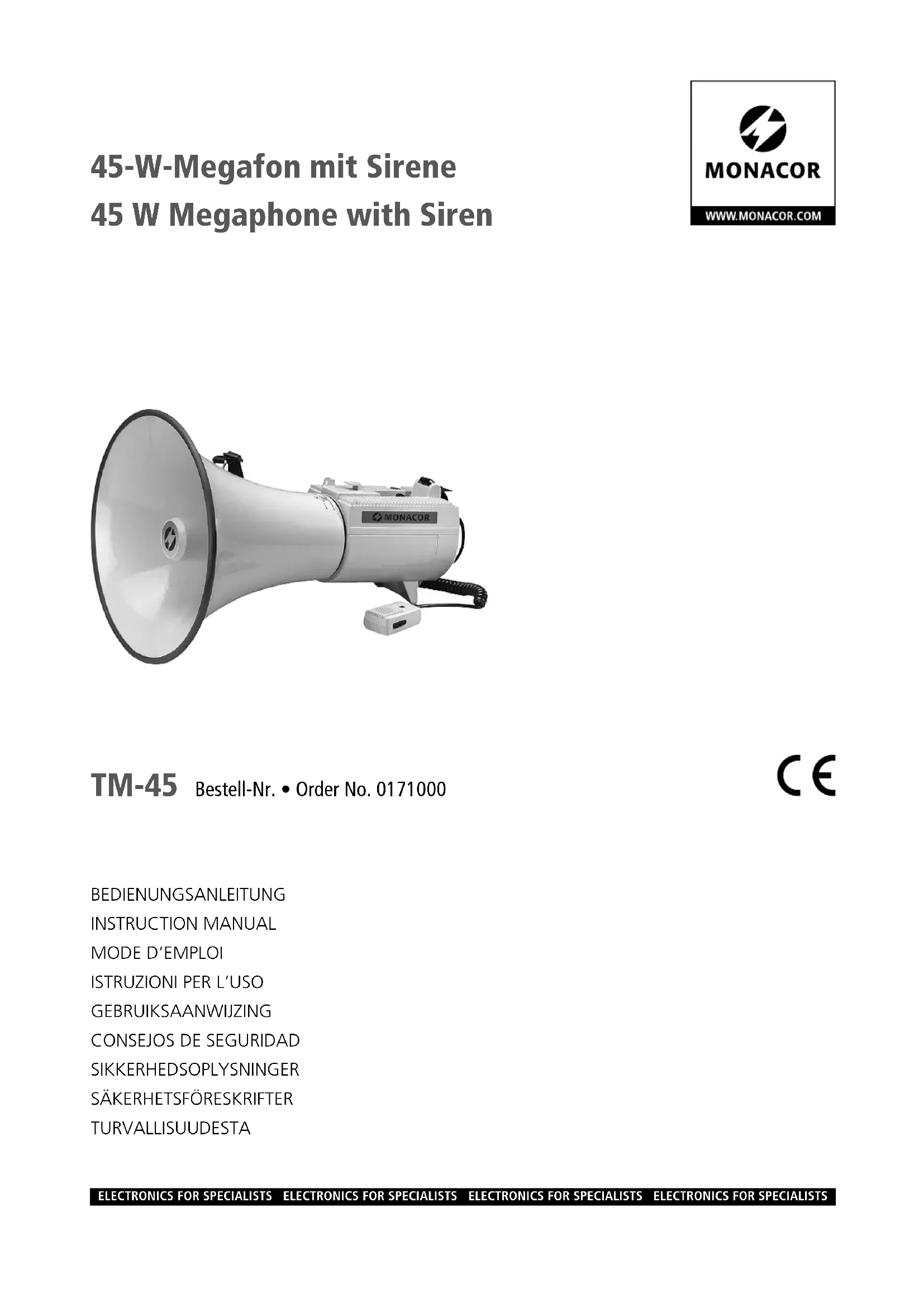 TM45 - Mégaphone Monacor - Notice d'utilisation et mode d'emploi gratuit