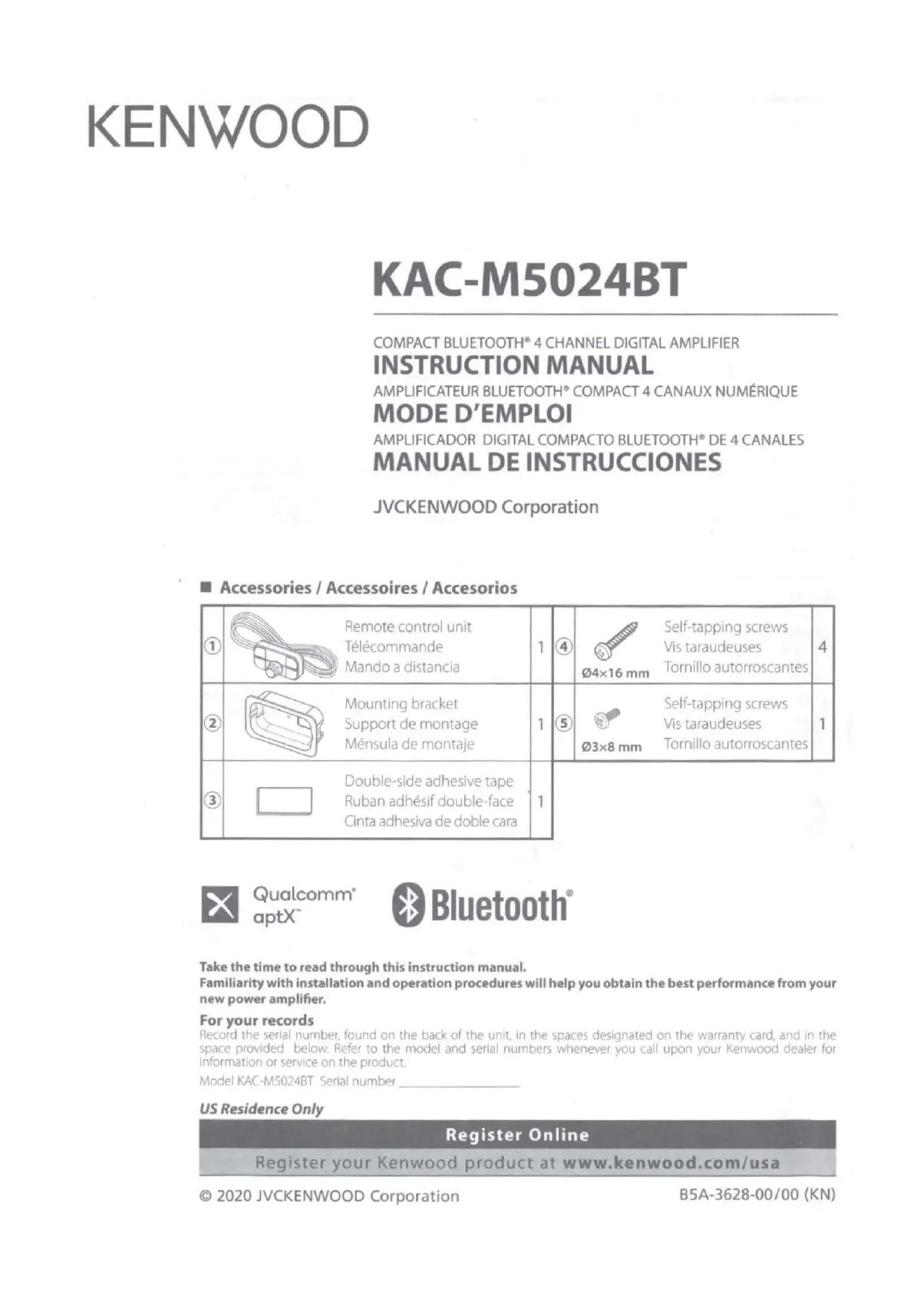 Retrouvez gratuitement la notice de l'appareil KACM5024BT KENWOOD au format PDF.