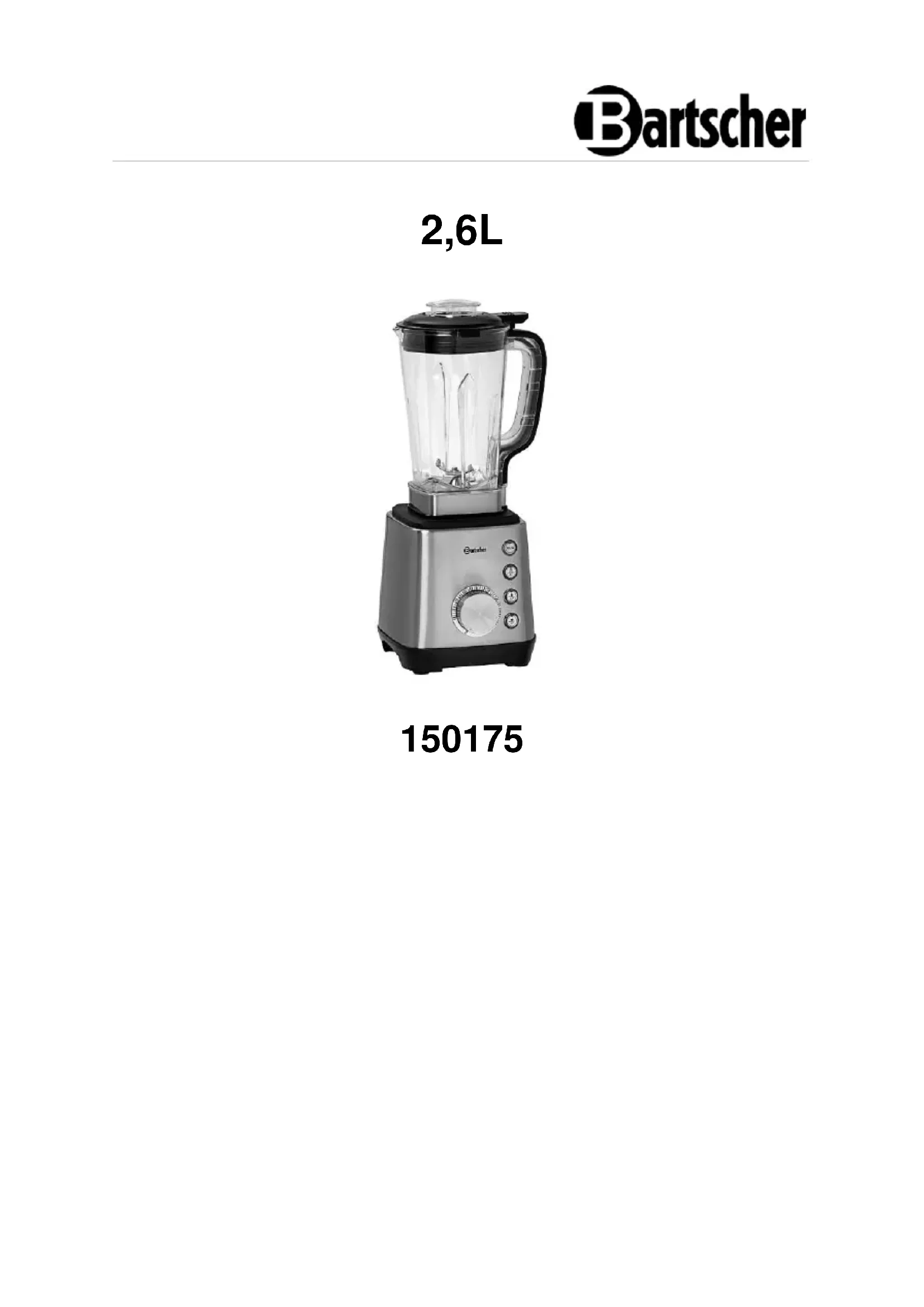 150175 - Blender BARTSCHER - Notice d'utilisation et mode d'emploi gratuit