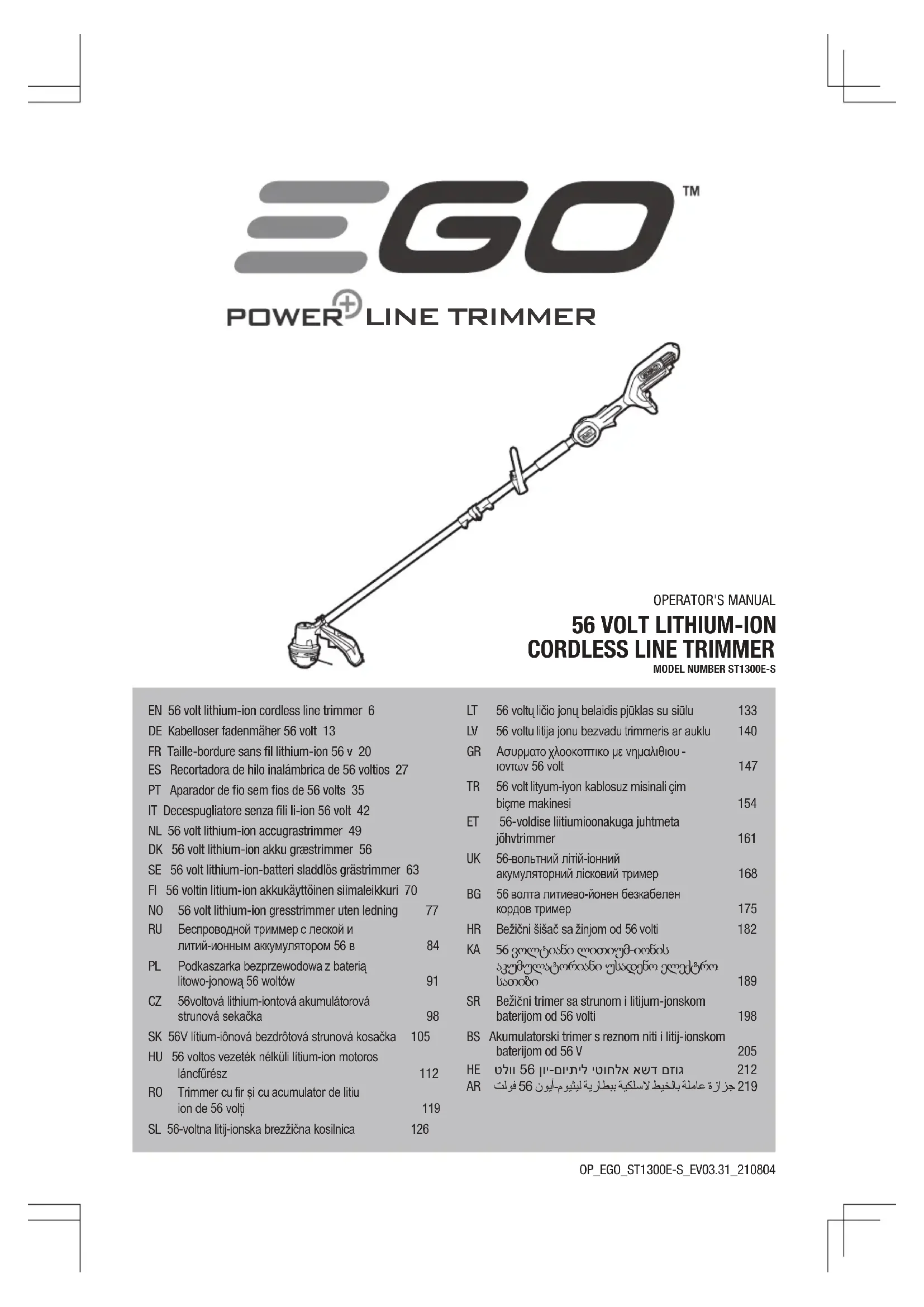 ST1301ES - Coupe-herbe EGO - Notice d'utilisation et mode d'emploi gratuit