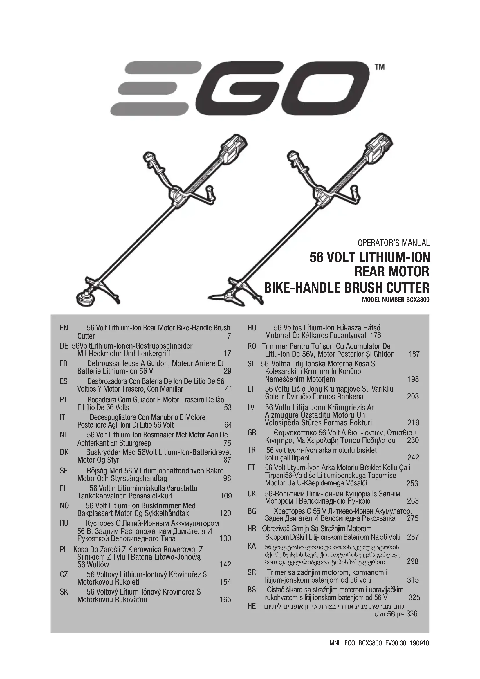 BCX3800E - Coupe-herbe EGO - Notice d'utilisation et mode d'emploi gratuit