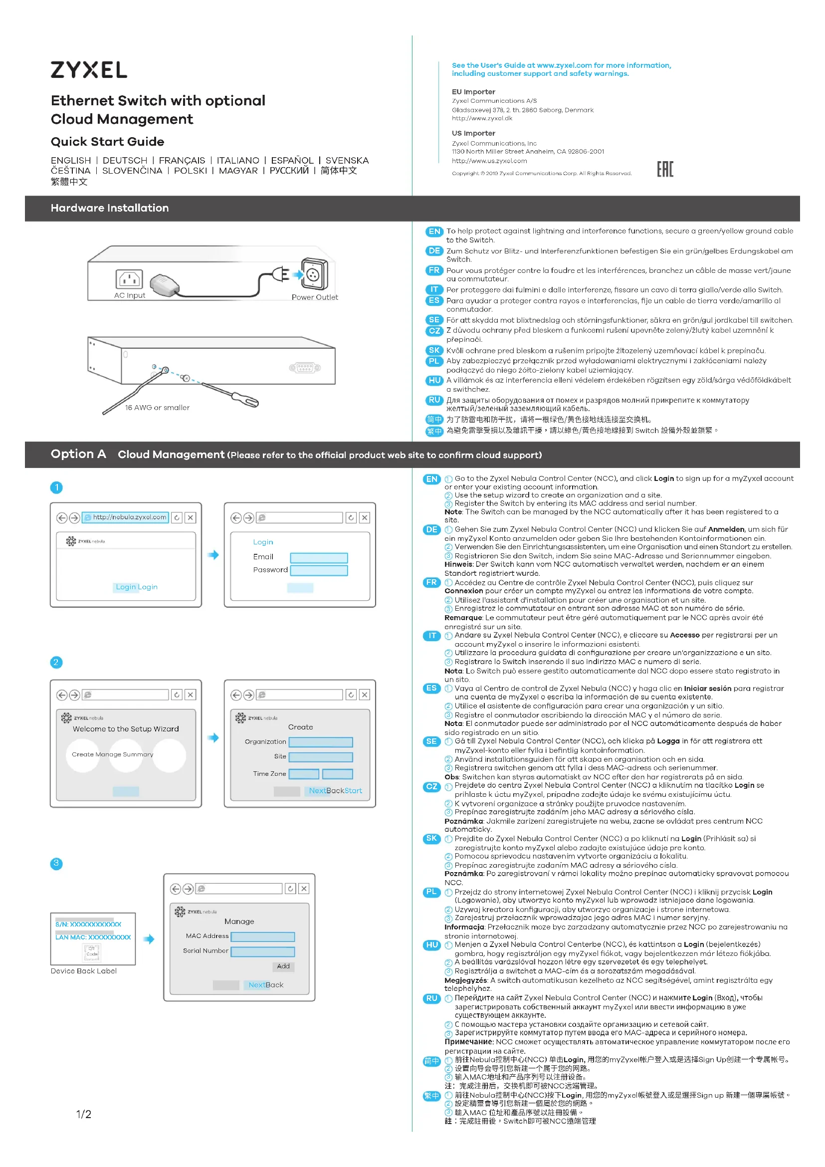 Retrouvez gratuitement la notice de l'appareil XS193012HP ZYXEL au format PDF.