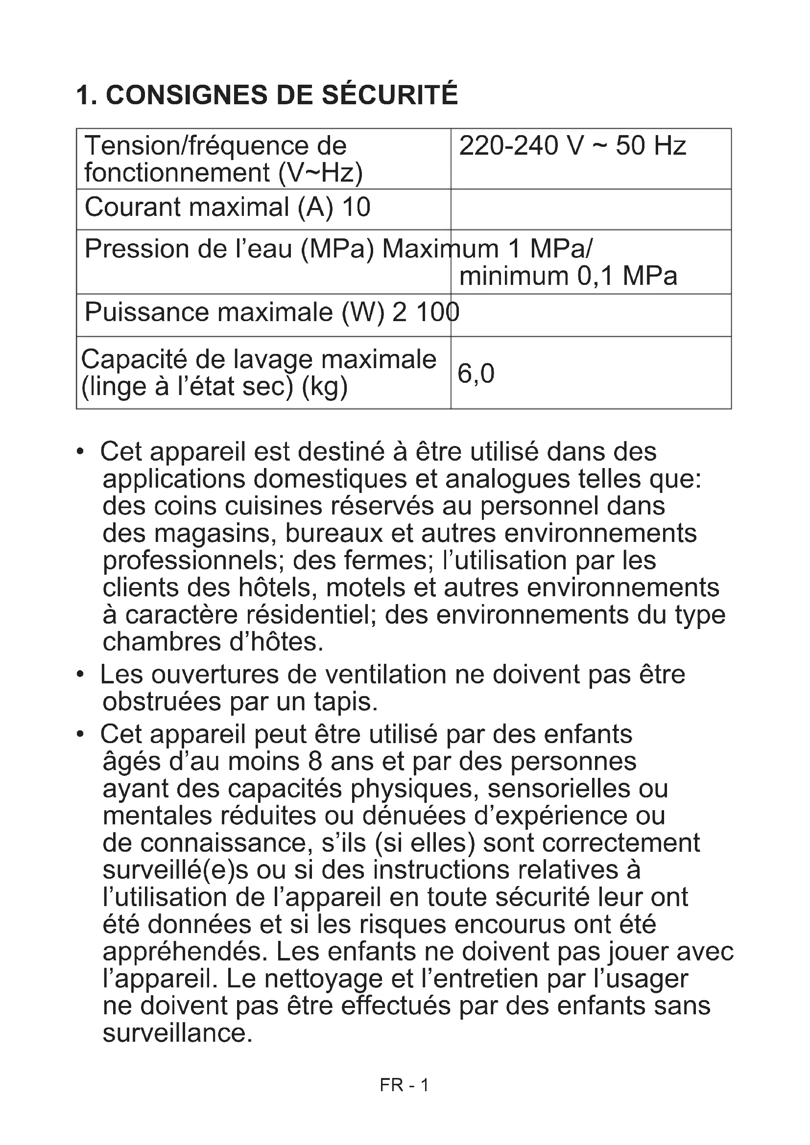 1. CONSIGNES DE SÉCURITÉ 1