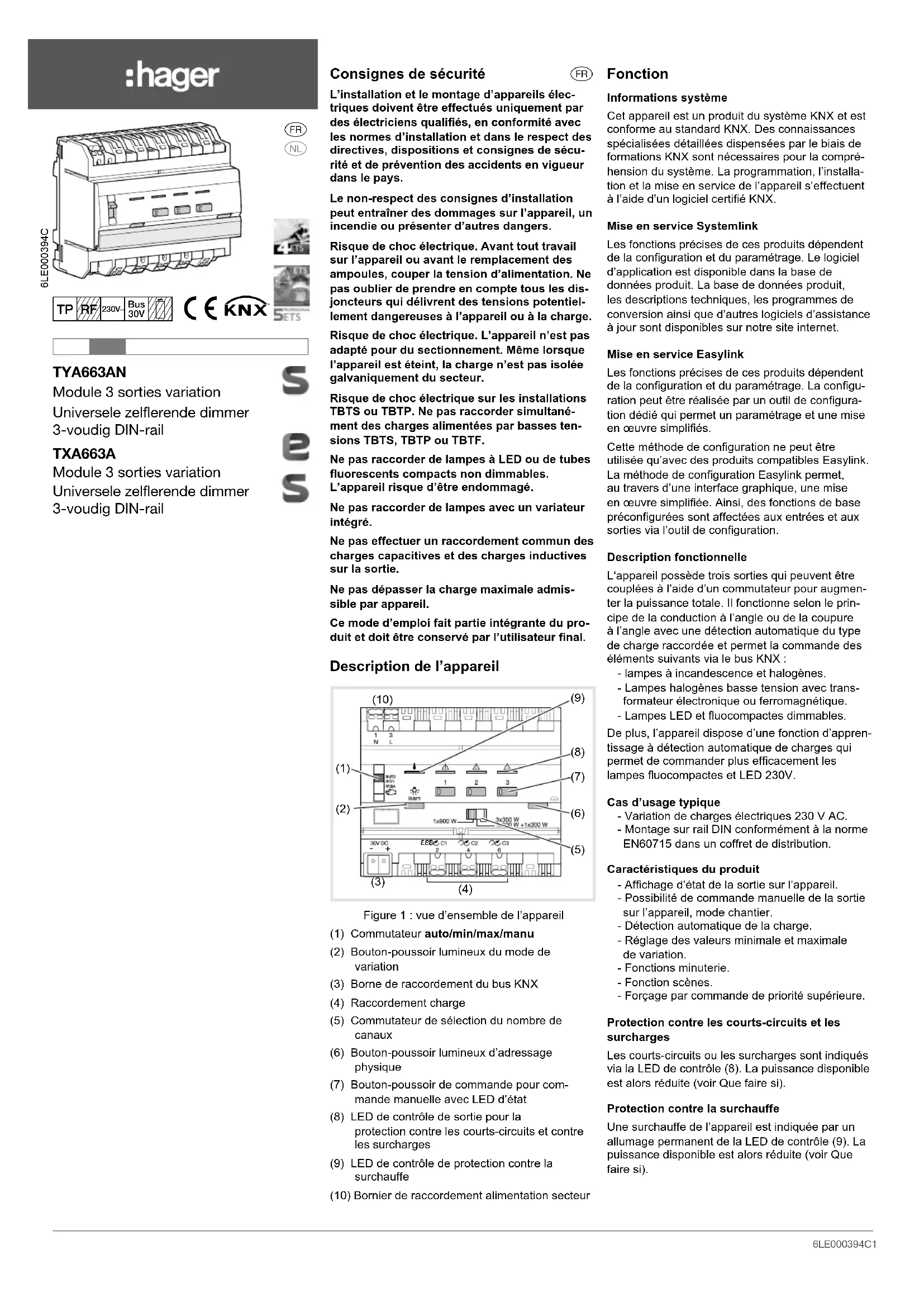 Téléchargez la notice de votre Variateur d'éclairage au format PDF gratuitement ! Retrouvez votre notice TXA663A - HAGER et reprennez votre appareil électronique en main. Sur cette page sont publiés tous les documents nécessaires à l'utilisation de votre appareil TXA663A de la marque HAGER.