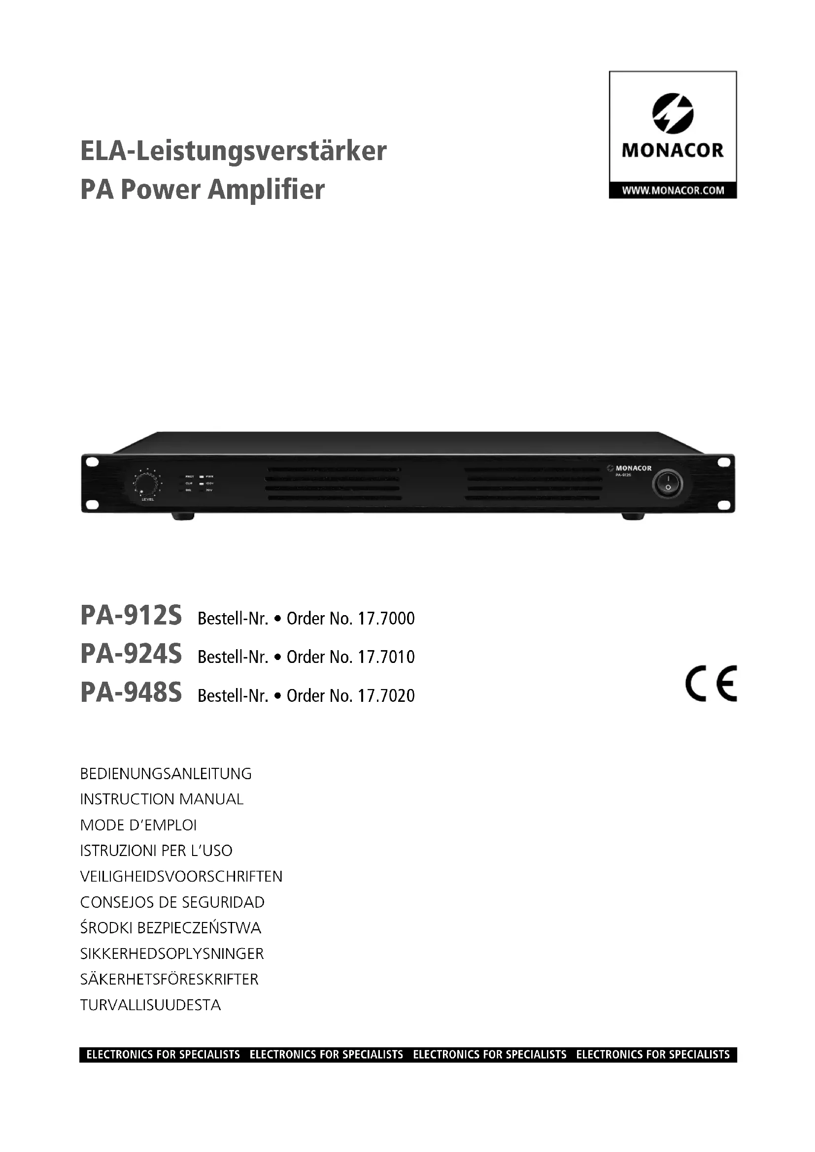 Retrouvez gratuitement la notice de l'appareil PA924S Monacor au format PDF.