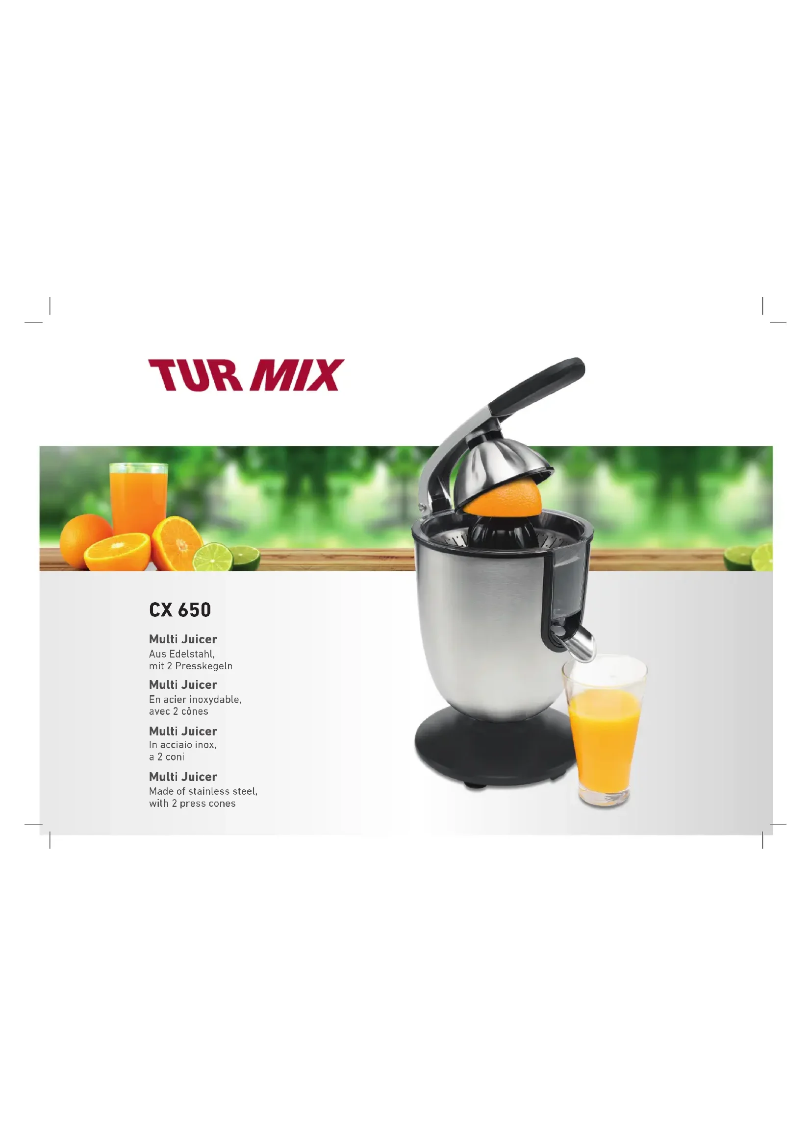 Retrouvez gratuitement la notice de l'appareil CX 650 Turmix au format PDF.