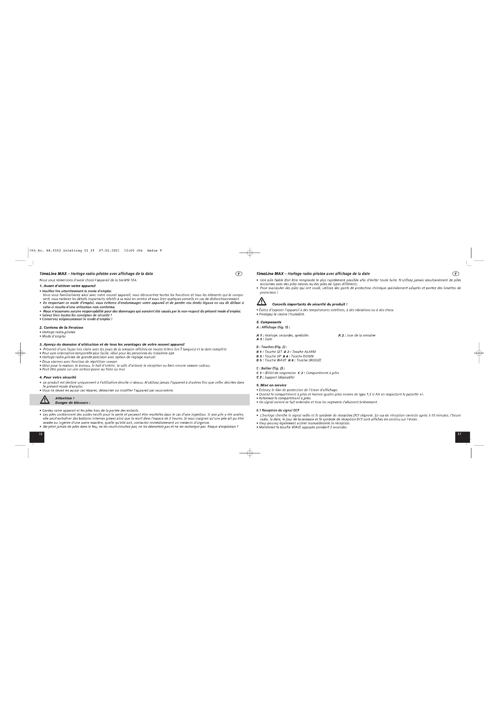 Timeline Max 60.4512.01 - Horloge TFA - Notice d'utilisation et mode d'emploi gratuit