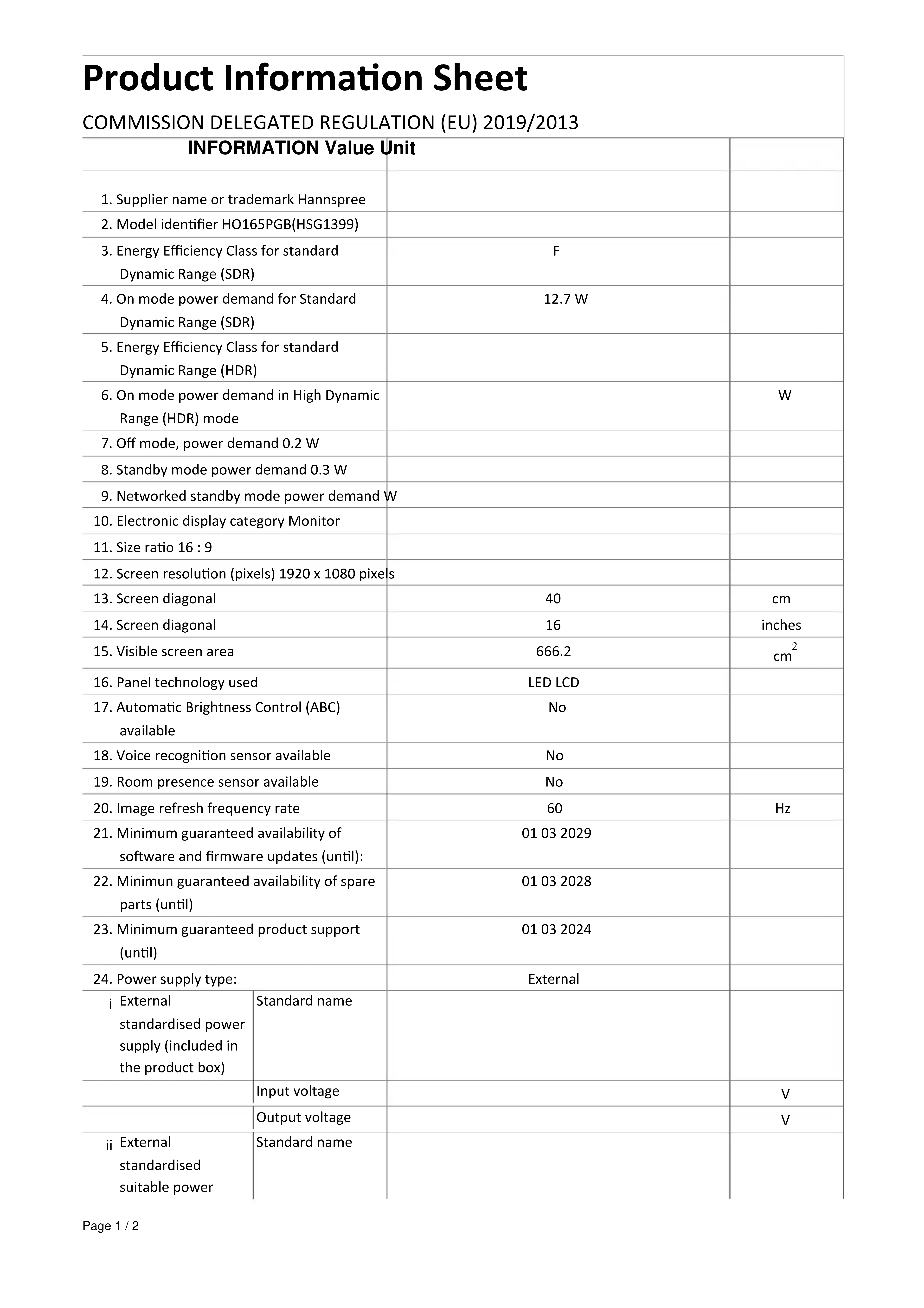 Retrouvez gratuitement la notice de l'appareil HO 165 PGB HANNSPREE au format PDF.