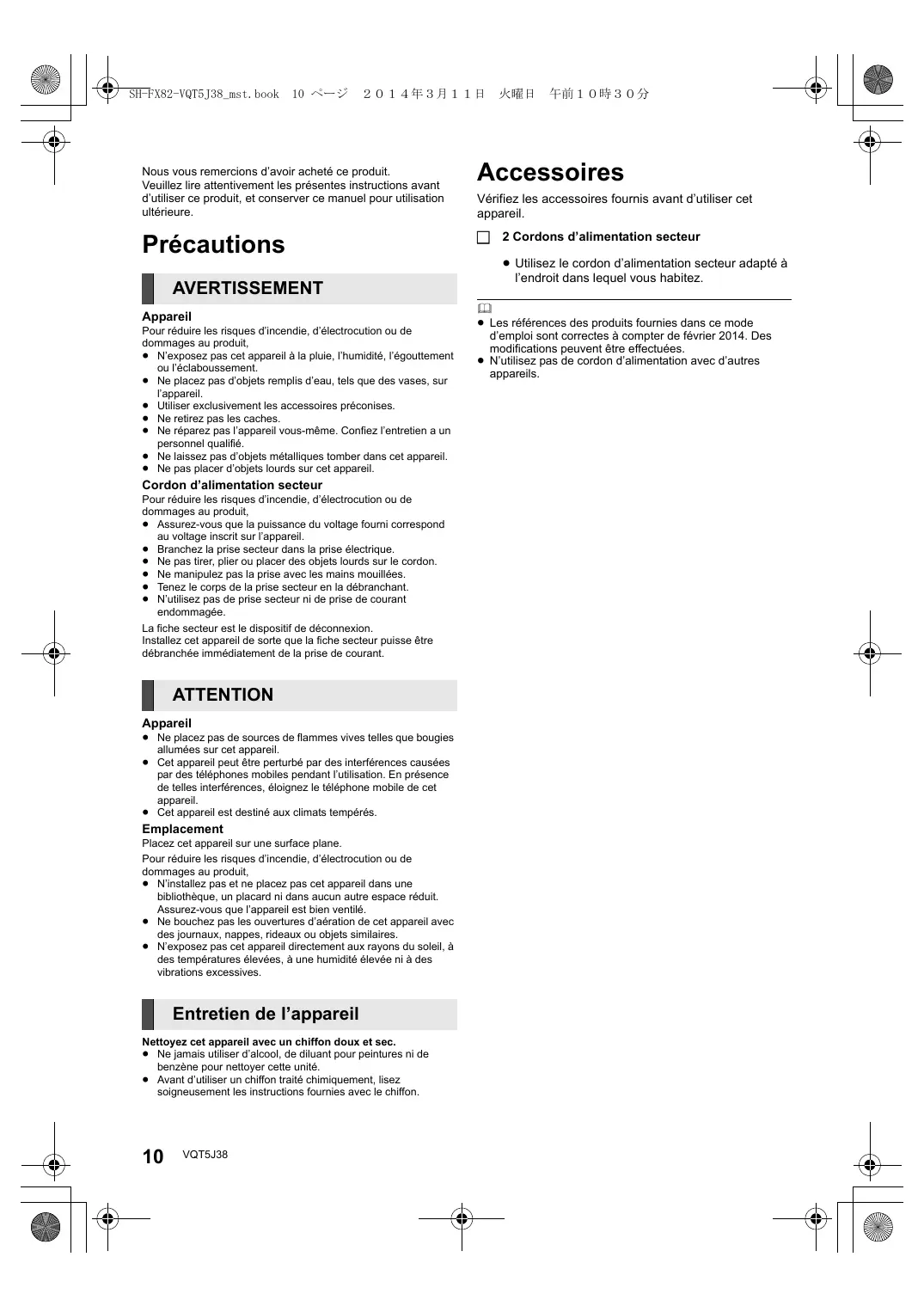 Accessoires Vérifiez les accessoires fournis avant d’utiliser cet appareil.