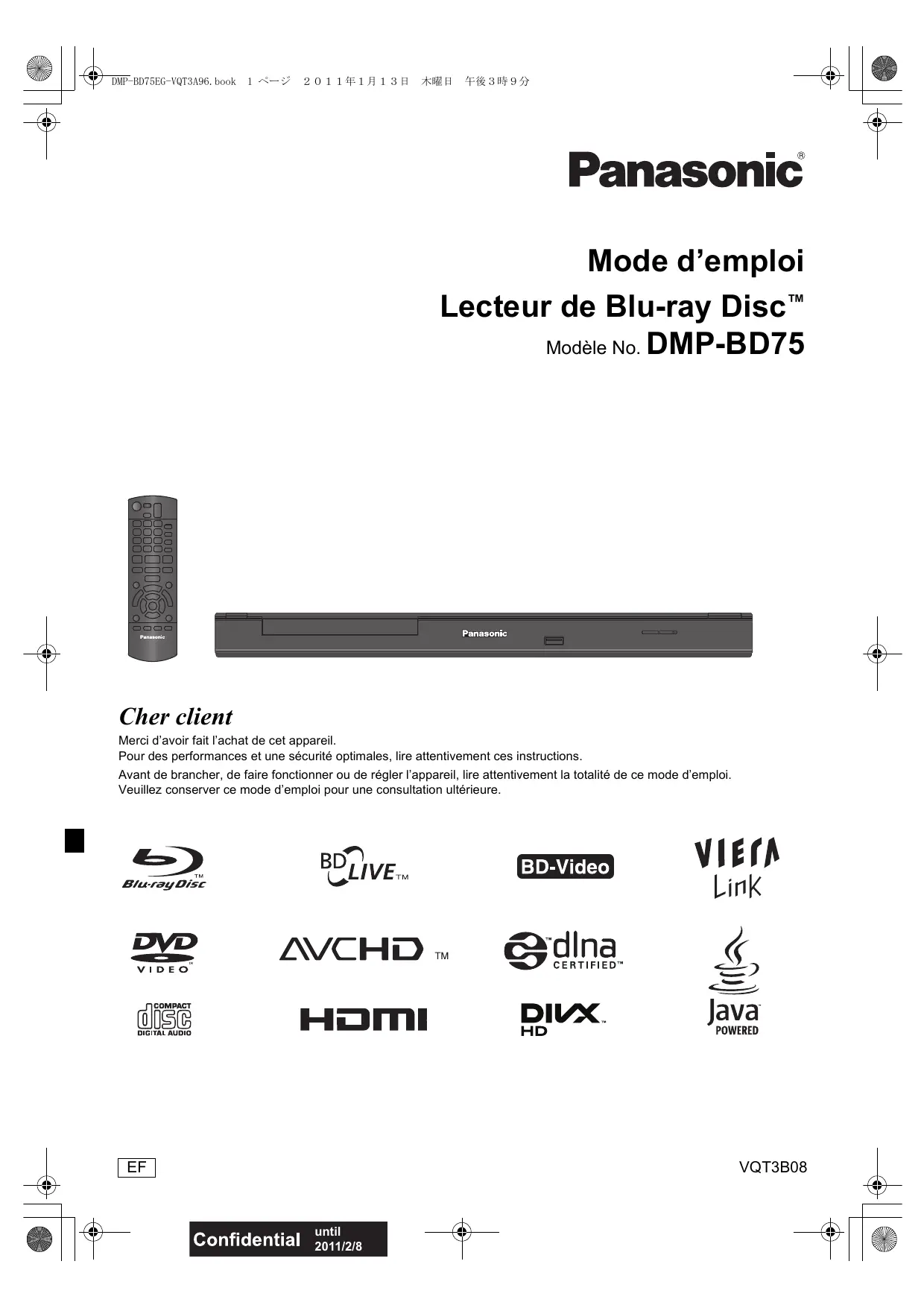 Retrouvez gratuitement la notice de l'appareil DMP BD75 PANASONIC au format PDF.