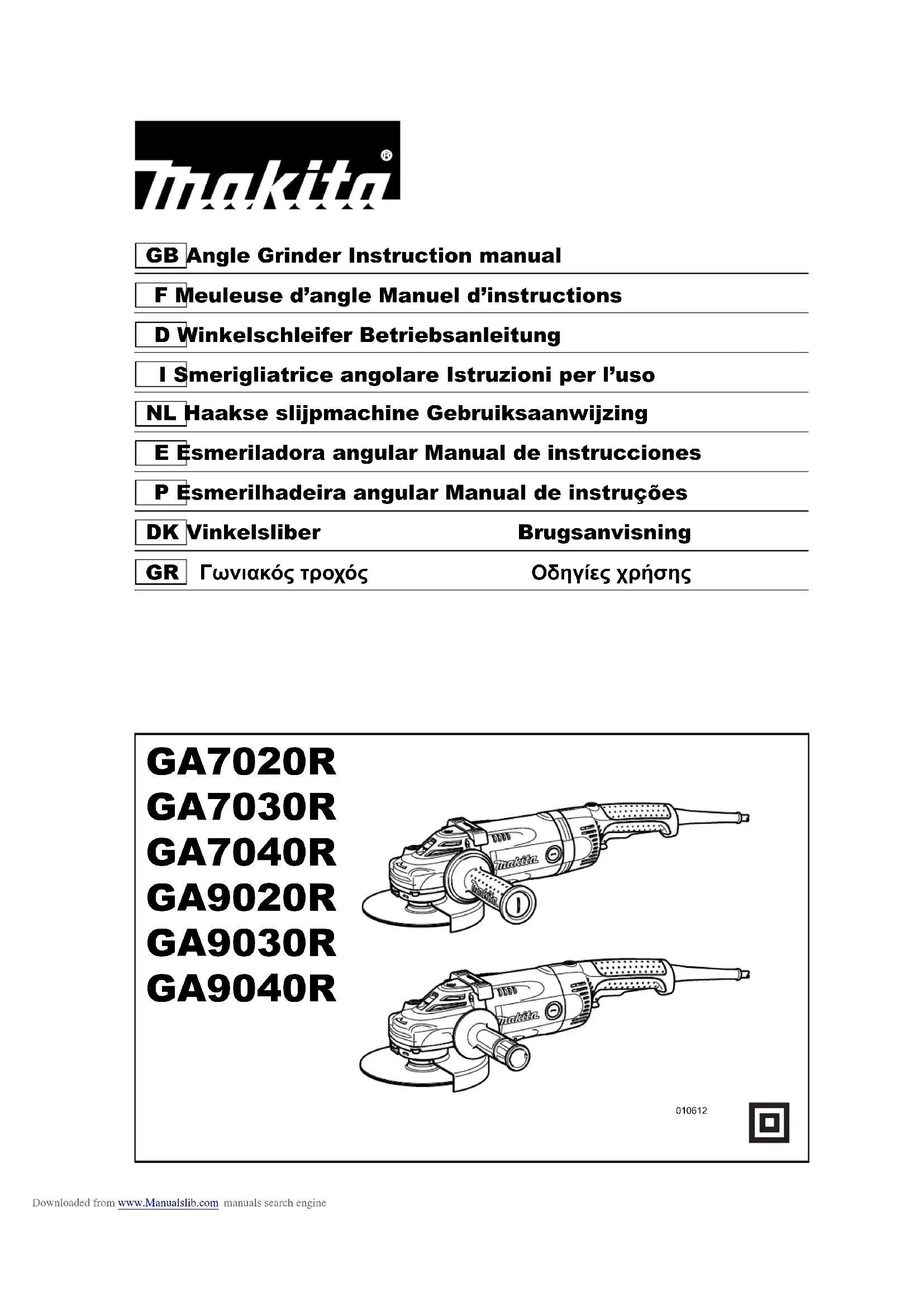 - Veillez à identifier les mesures de sécurité destinées à protéger l’opérateur et établies à partir de l’estimation de l’exposition dans les conditions réelles d’utilisation (en prenant en compte toutes les étapes du cycle de fonctionnement, telles que les périodes de mise hors tension de l’outil, les périodes de fonctionnement au ralenti et les périodes de mise en route). Pour les pays d’Europe uniquement ENH101-15 Déclaration de conformité CE Nous, Makita Corporation, en tant que fabricant responsable, déclarons que les machines Makita suivantes : Nom de la machine : Meuleuse d’angle N° de modèle/Type : GA7020R, GA7030R, GA7040R, GA9020R, GA9030R, GA9040R sont fabriquées en série et sont conformes aux directives européennes suivantes : 2006/42/CE et sont produites conformément aux normes ou documents de normalisation suivants : EN60745 La documentation technique est disponible auprès de notre représentant en Europe qui est : Makita International Europe Ltd. Michigan Drive, Tongwell, Milton Keynes, Bucks MK15 8JD, Angleterre