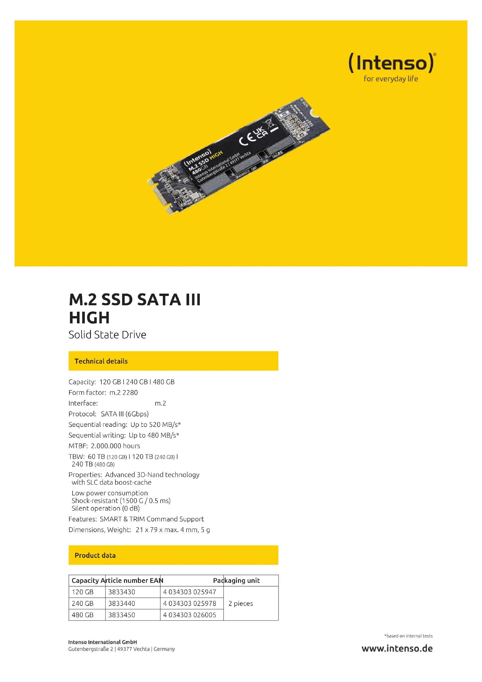 M.2 SSD SATA III High - Disque dur INTENSO - Notice d'utilisation et mode d'emploi gratuit