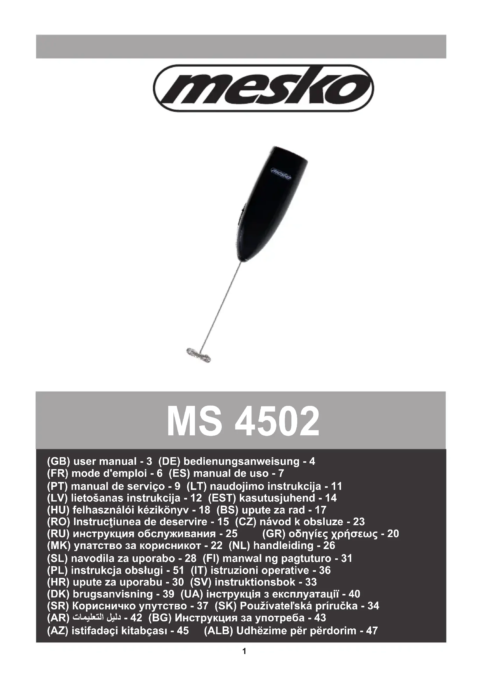 MS 4502 - Mousseur à lait Mesko - Notice d'utilisation et mode d'emploi gratuit