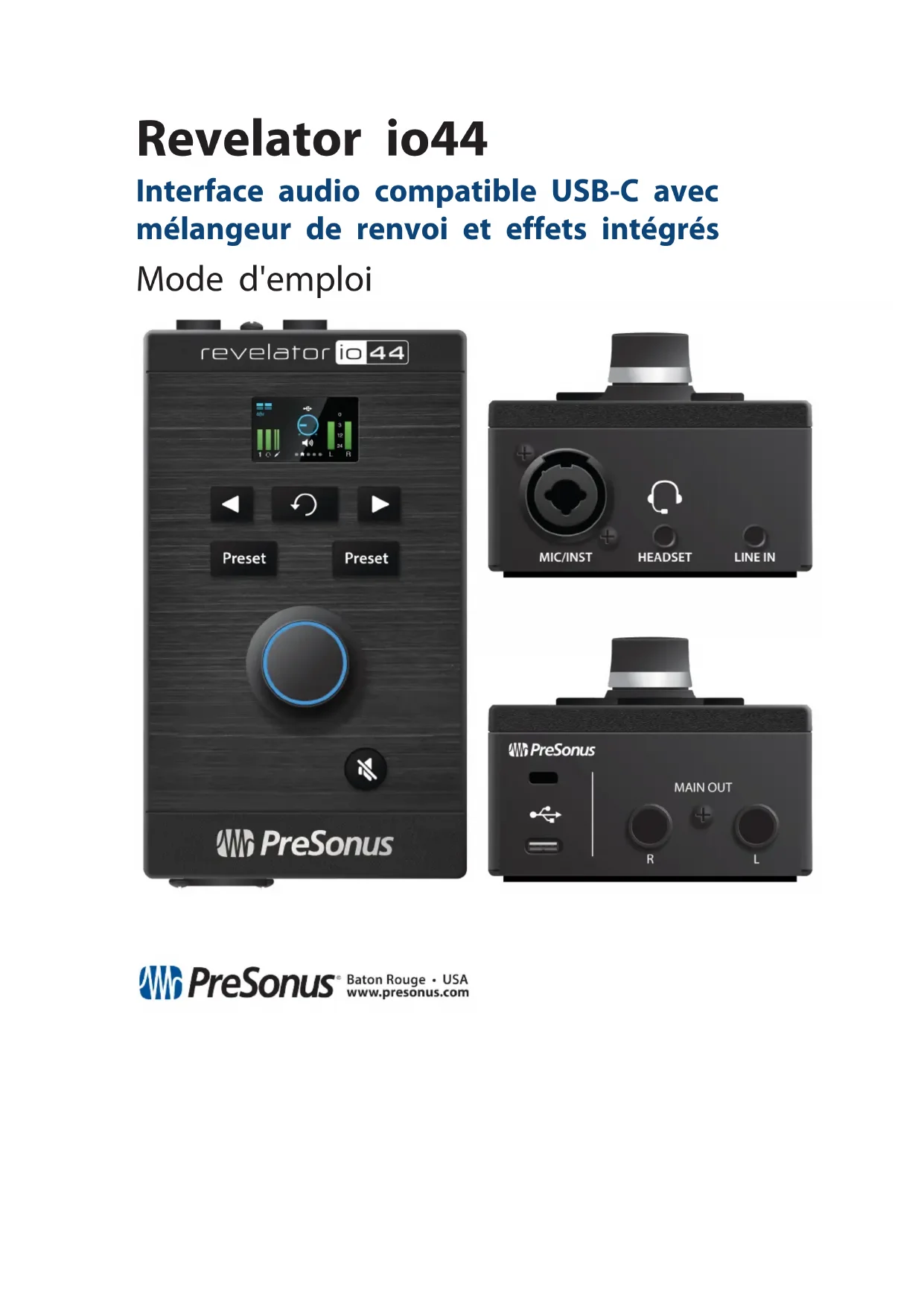 Retrouvez gratuitement la notice de l'appareil Revelator io44 PRESONUS au format PDF.