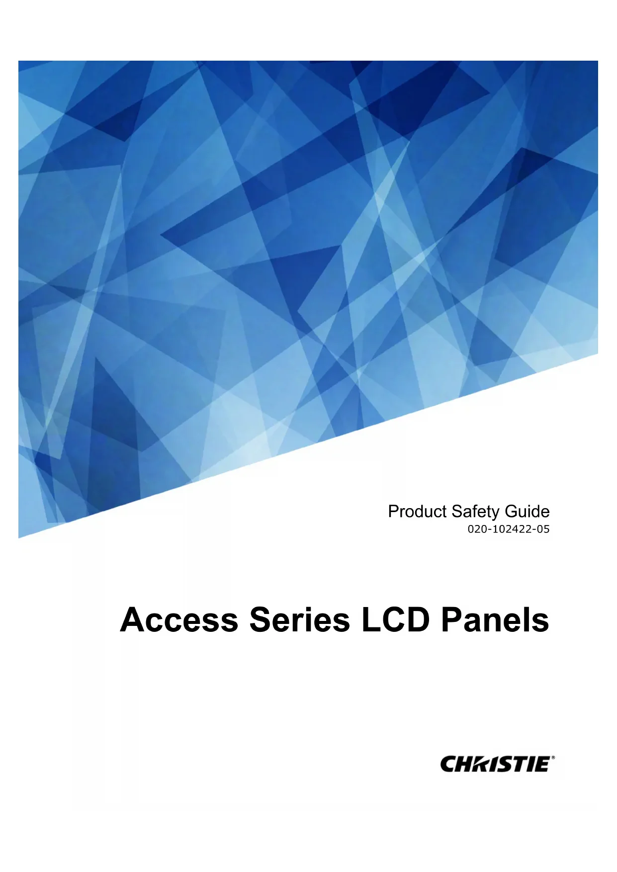 - Asia Pacific: +65 6877-8737 ou Support.APAC@christiedigital.com Informations importantes relatives à la sécurité Access Series LCD Panels Guide de sécurité du produit 12 020-102422-05 Rev. 1 (05-2019) Copyright