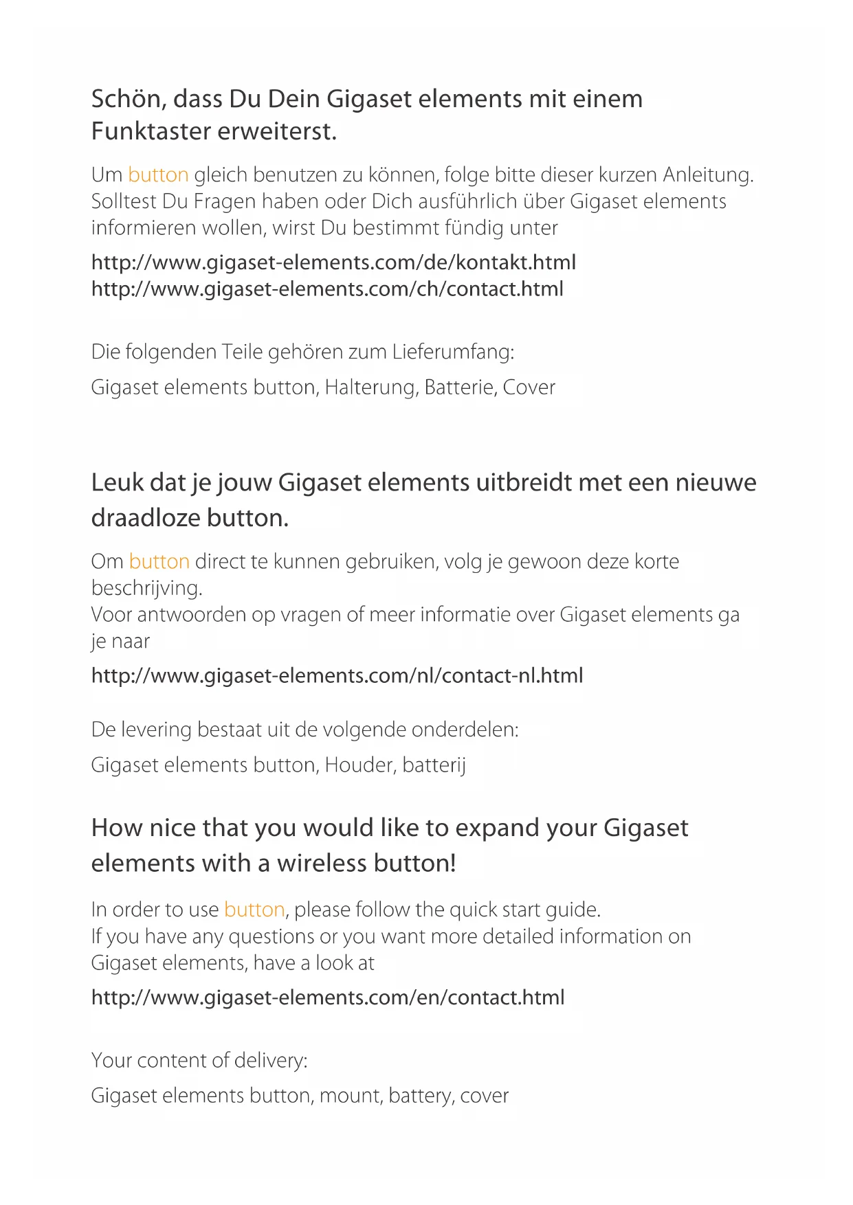 Retrouvez gratuitement la notice de l'appareil Elements Button GIGASET au format PDF.