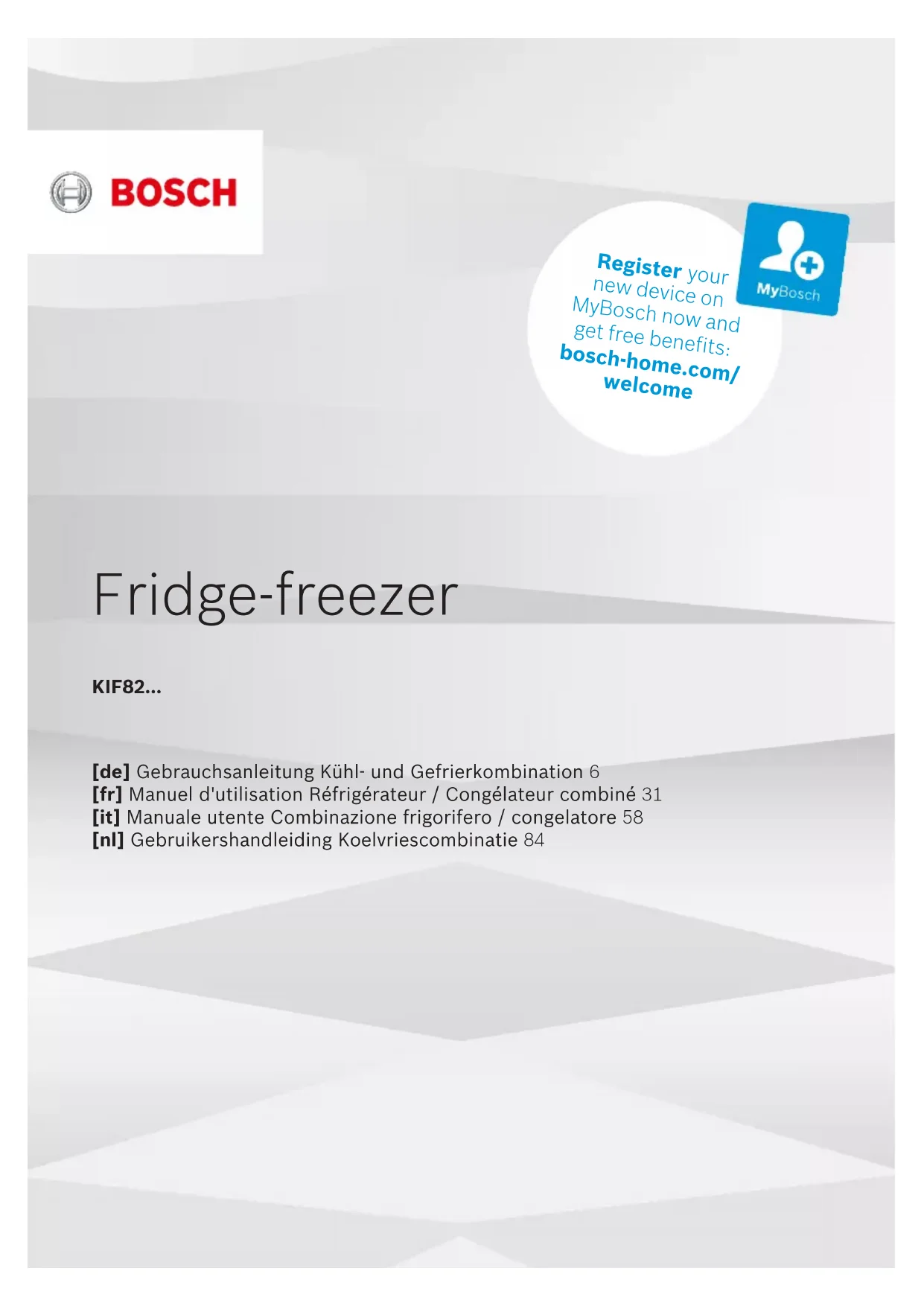 Retrouvez gratuitement la notice de l'appareil KIF82PFE0 BOSCH au format PDF.