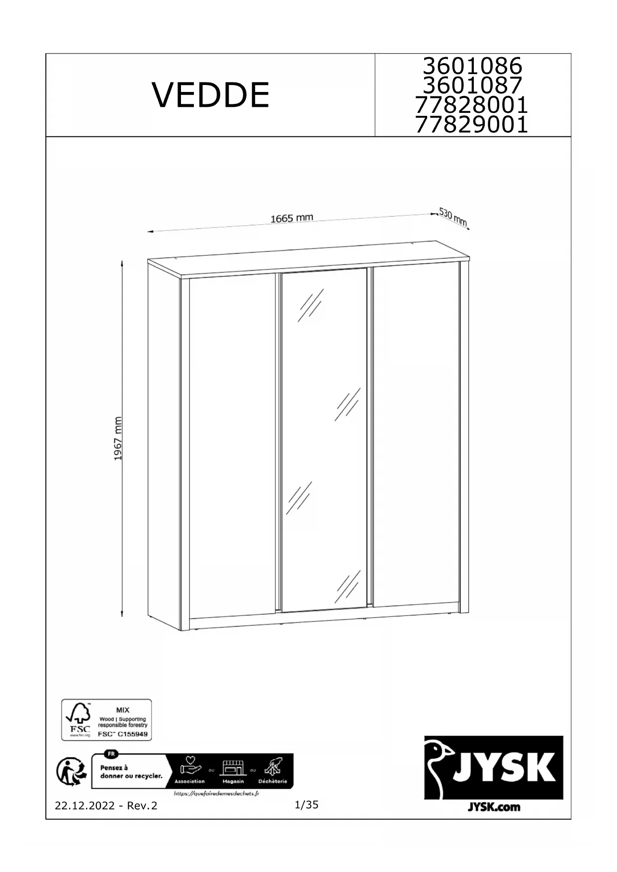 VEDDE 167x197 - Armoire JYSK - Notice d'utilisation et mode d'emploi gratuit