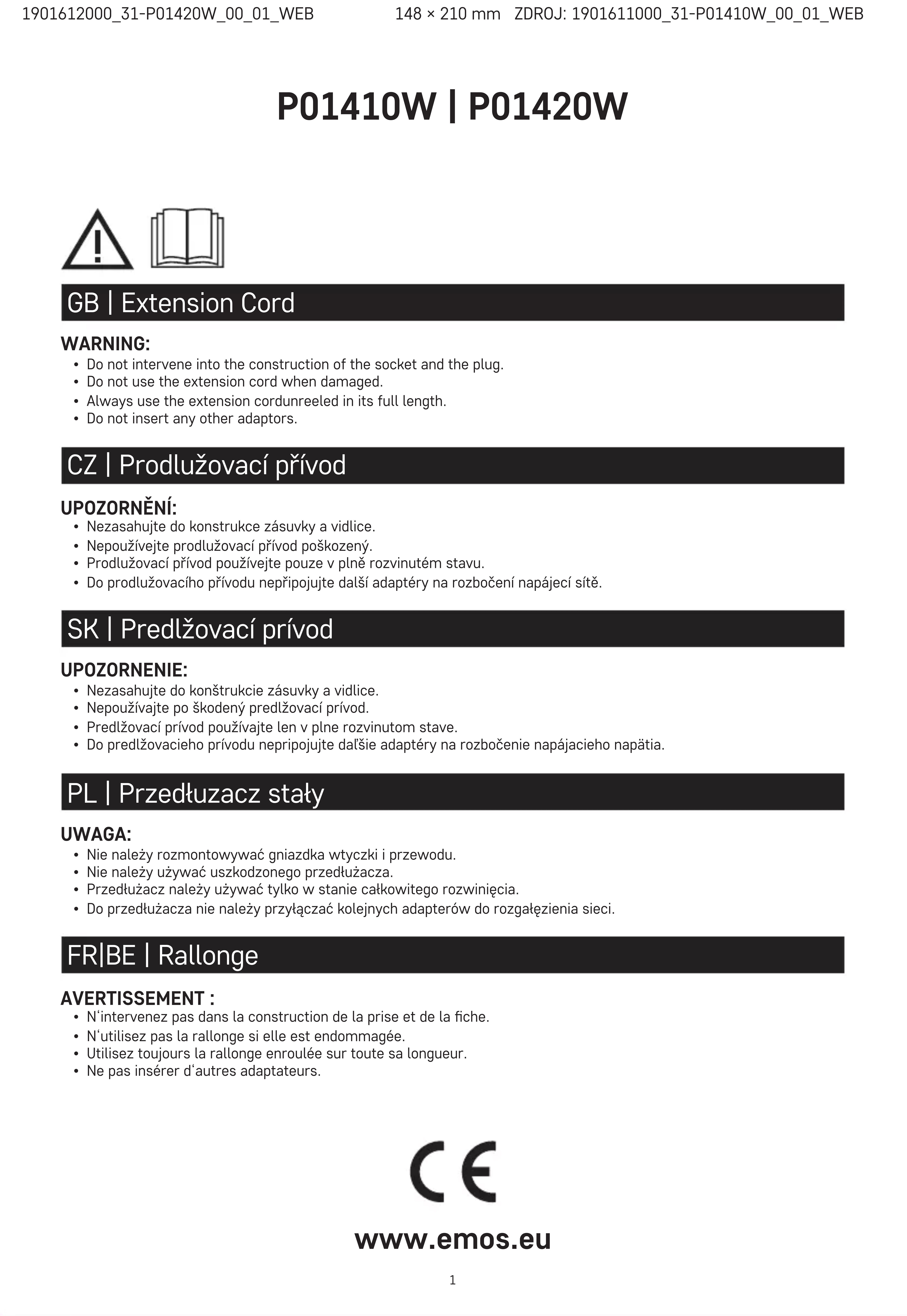 MODE D'EMPLOI P01420W Emos