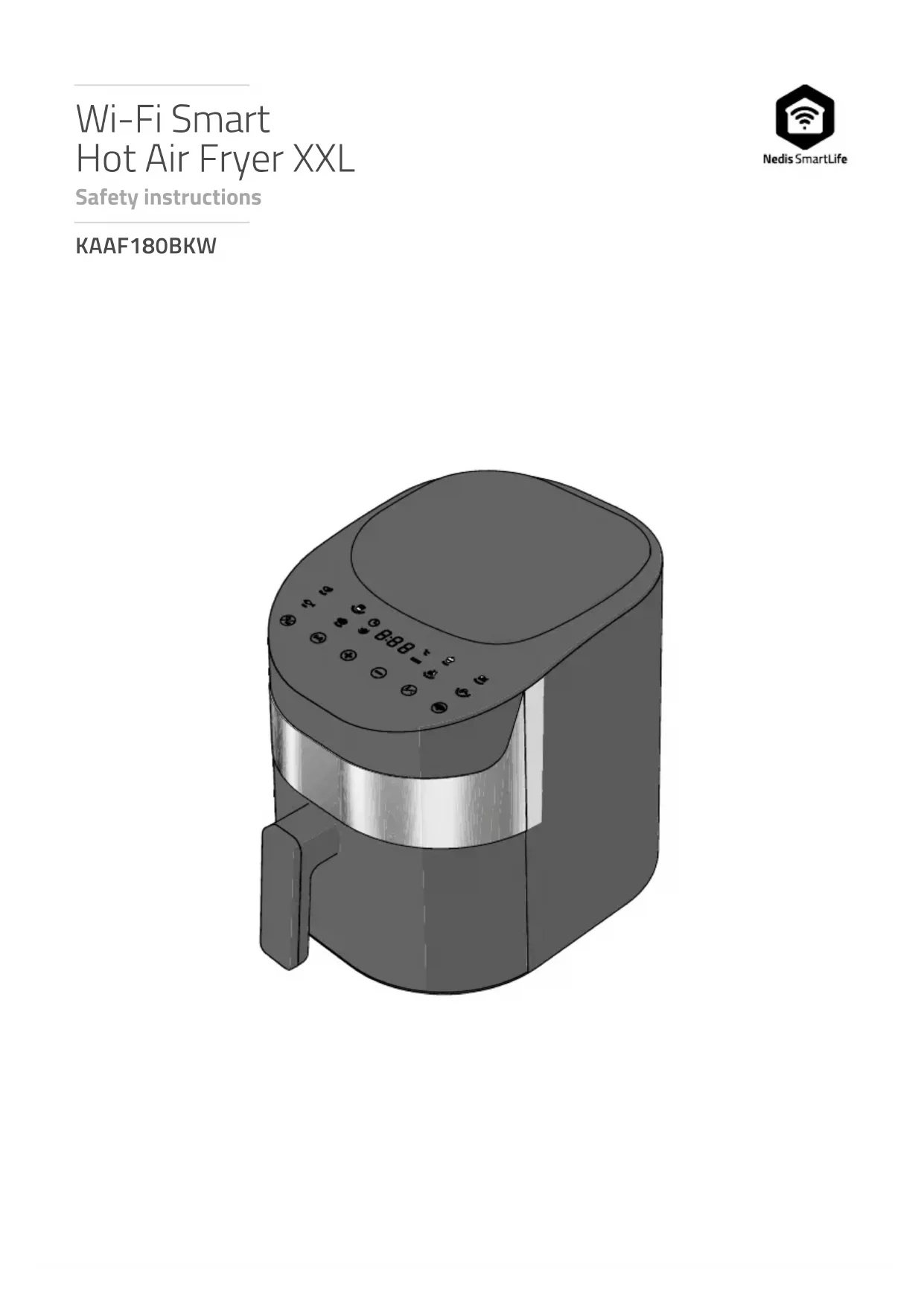 Guide de démarrage rapide Friteuse à air chaud Wi-Fi intelligente XXL KAAF180BKW Pour plus d'informations, consultez le manuel détaillé en ligne : ned.is/kaaf180bkw À propos de ce document Ce document constitue le manuel de l'utilisateur. Il contient toutes les informations nécessaires à une utilisation correcte, ecace et sûre du produit. Assurez-vous d'avoir entièrement lu et compris les instructions de ce document avant d'installer ou d'utiliser le produit. Conservez l'emballage et le présent document pour référence ultérieure. Verwenden des Produkts 6 WARNUNG! Verbrennungsgefahr:• Der Korb und die Außenächen können während des Betriebs des Produkts heiß werden.