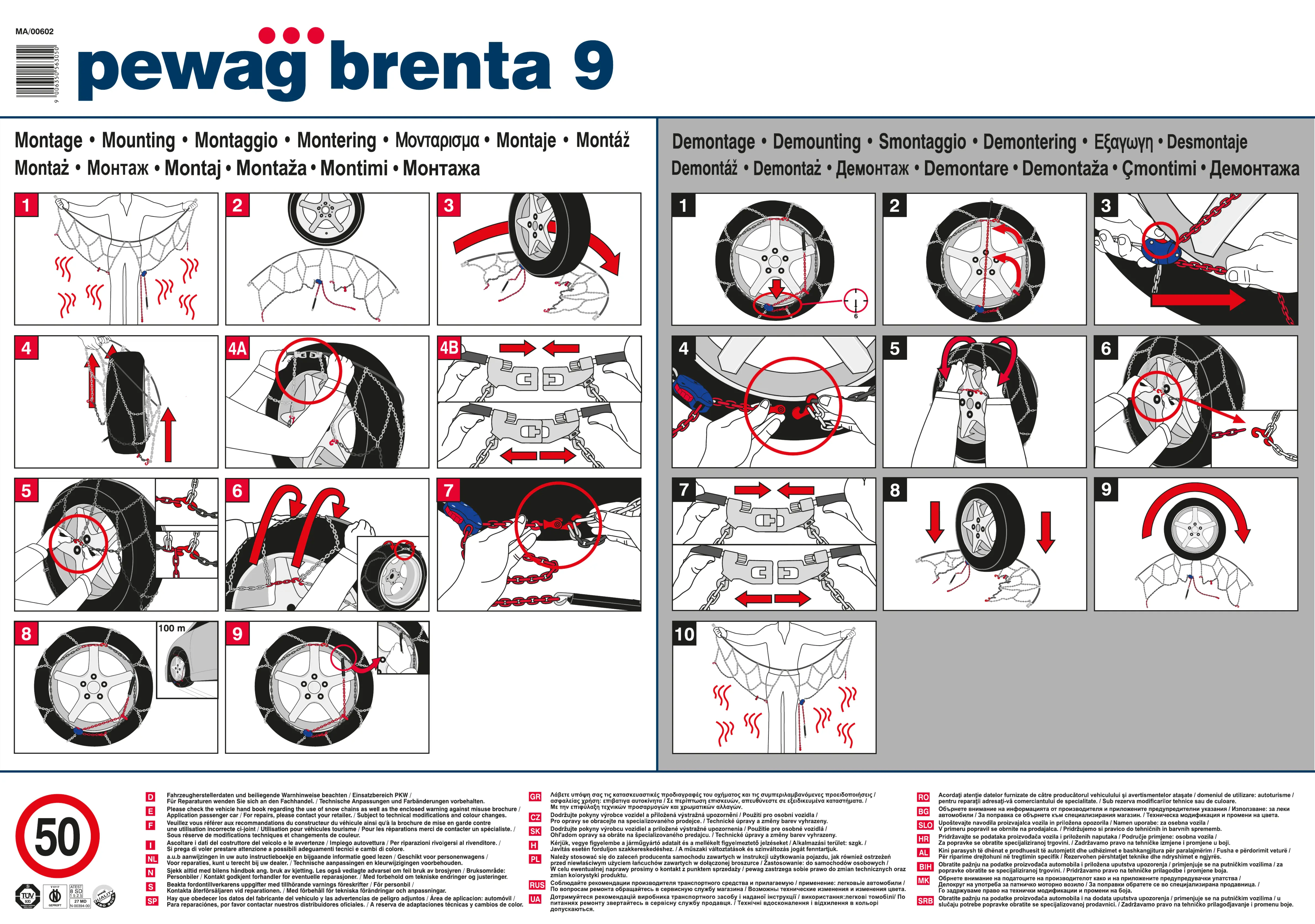 Brenta 9 - Chaîne à neige Pewag - Notice d'utilisation et mode d'emploi gratuit