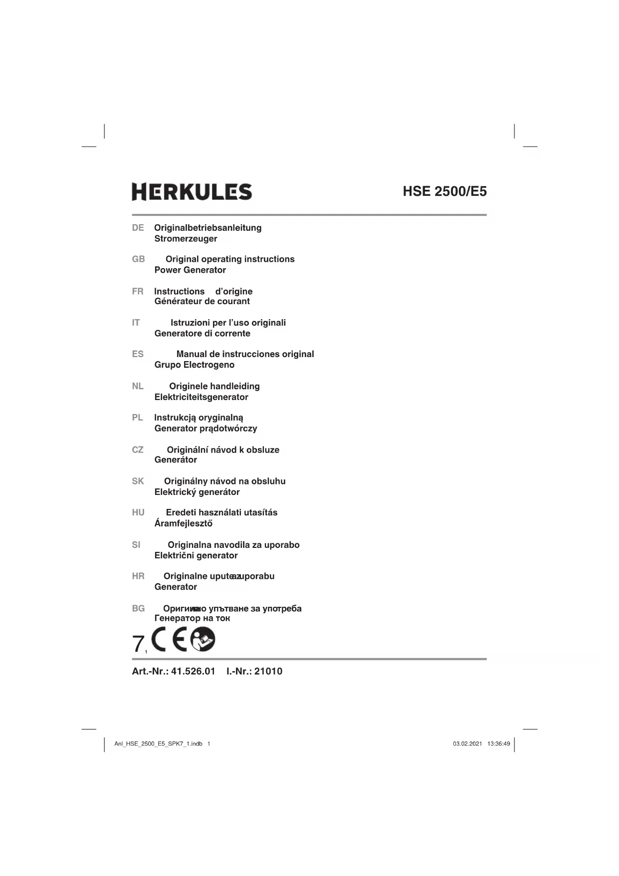 HSE 2500E5 - Générateur Herkules - Notice d'utilisation et mode d'emploi gratuit