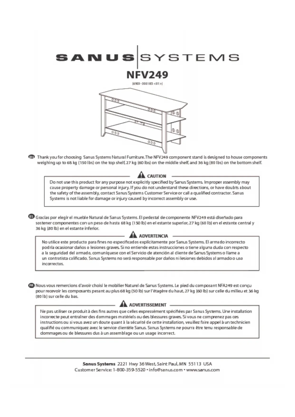 Téléchargez la notice de votre Meuble TV au format PDF gratuitement ! Retrouvez votre notice NFV249 - SANUS et reprennez votre appareil électronique en main. Sur cette page sont publiés tous les documents nécessaires à l'utilisation de votre appareil NFV249 de la marque SANUS.