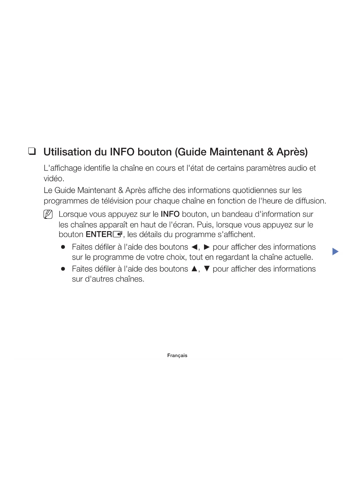 pour afficher des informations sur d'autres chaînes. Réglage des canaux Français◀ ▶