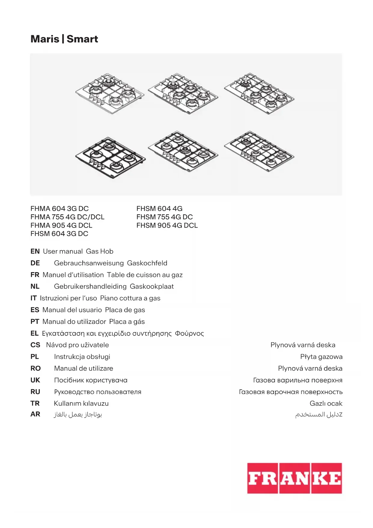 FHSM 755 4G DC ON E - Cuisinière FRANKE - Notice d'utilisation et mode d'emploi gratuit